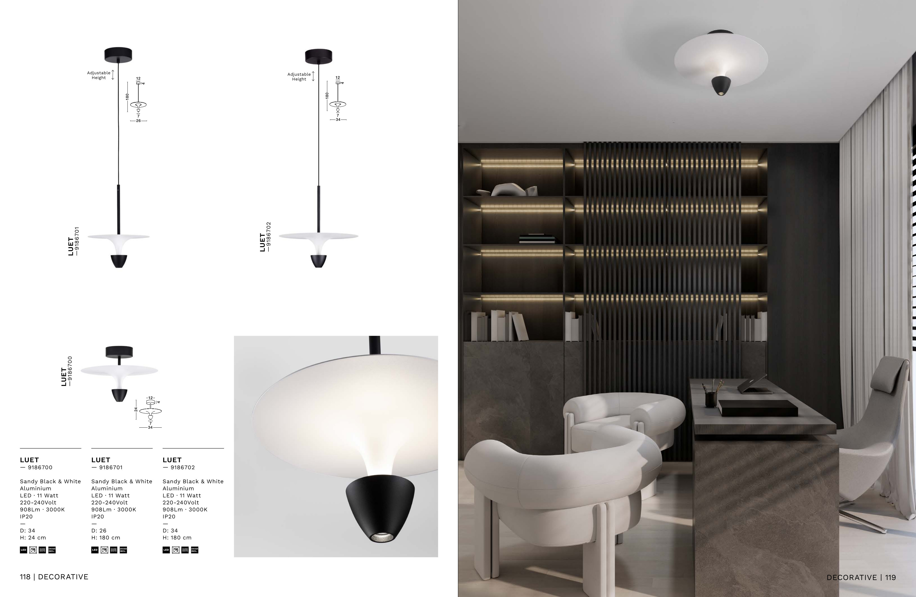Осветителното тяло 9186702 ще осигури комфорт и естетика във всяко помещение, в което се постави. Цялостната визия и дизайн на лампата и вложените в изработката й материали, като алуминий в черен и бял мат, ще допринесат за един неповторим стил. Благодарение на дългогодишния опит, качествените материали и строгия контрол на качеството на изработка на производителя Nova-Luce (Гърция), 9186702 е на високо европейско ниво.