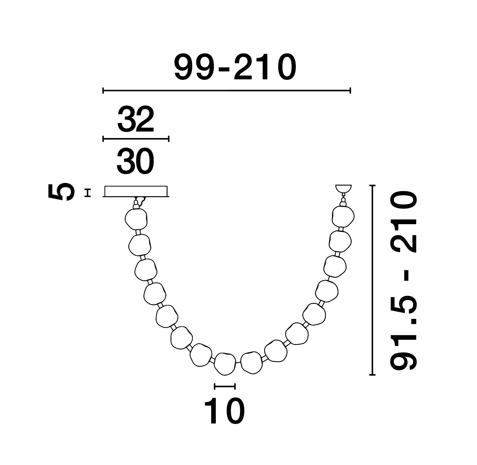 Ел. мощност 1 х 119 W Размери 213-385см x 138-240см x Ф10см Производител Nova-Luce, Гърция