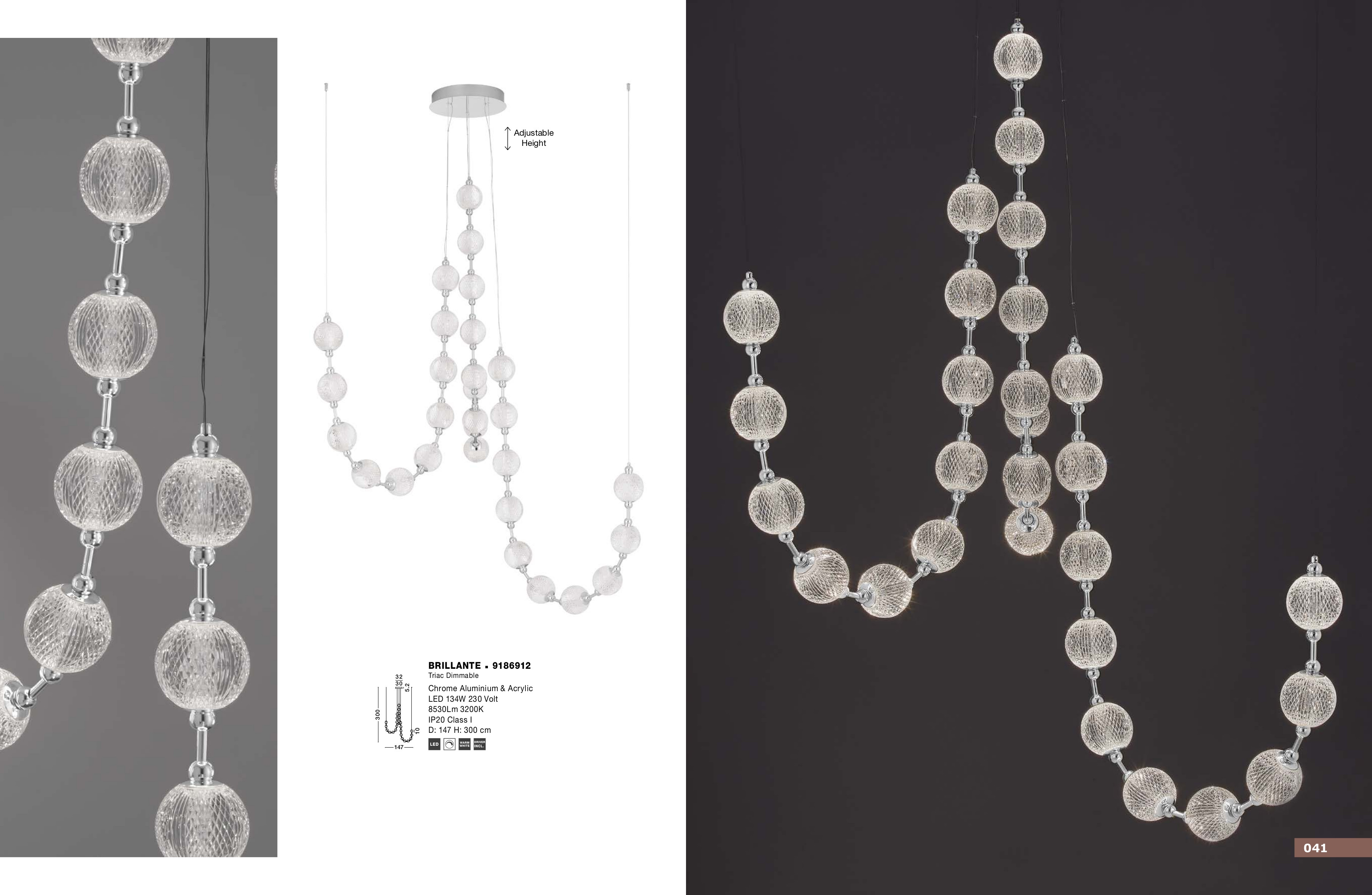 Осветителното тяло 9186912 ще осигури комфорт и естетика във всяко помещение, в което се постави. Цялостната визия и дизайн на лампата и вложените в изработката й материали, като хромиран алуминий, прозрачен полимер, ще допринесат за един неповторим стил. Благодарение на дългогодишния опит, качествените материали и строгия контрол на качеството на изработка на производителя Nova-Luce (Гърция), 9186912 е на високо европейско ниво.
