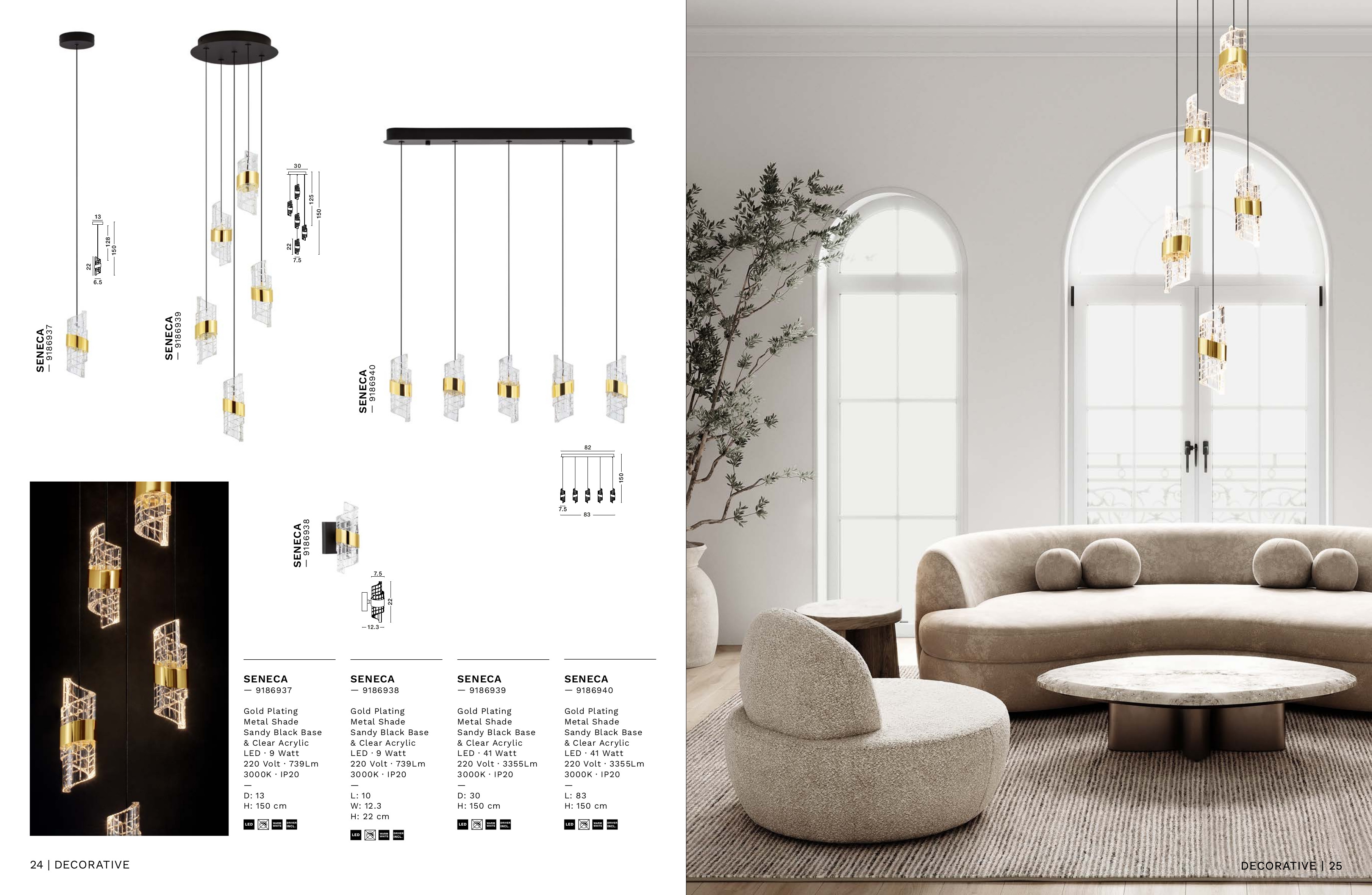 Осветителното тяло 9186937 ще осигури комфорт и естетика във всяко помещение, в което се постави. Цялостната визия и дизайн на лампата и вложените в изработката й материали, като метал в златен цвят, метална основа в черен цвят, прозрачен релефен акрил, ще допринесат за един неповторим стил. Благодарение на дългогодишния опит, качествените материали и строгия контрол на качеството на изработка на производителя Nova-Luce (Гърция), 9186937 е на високо европейско ниво.