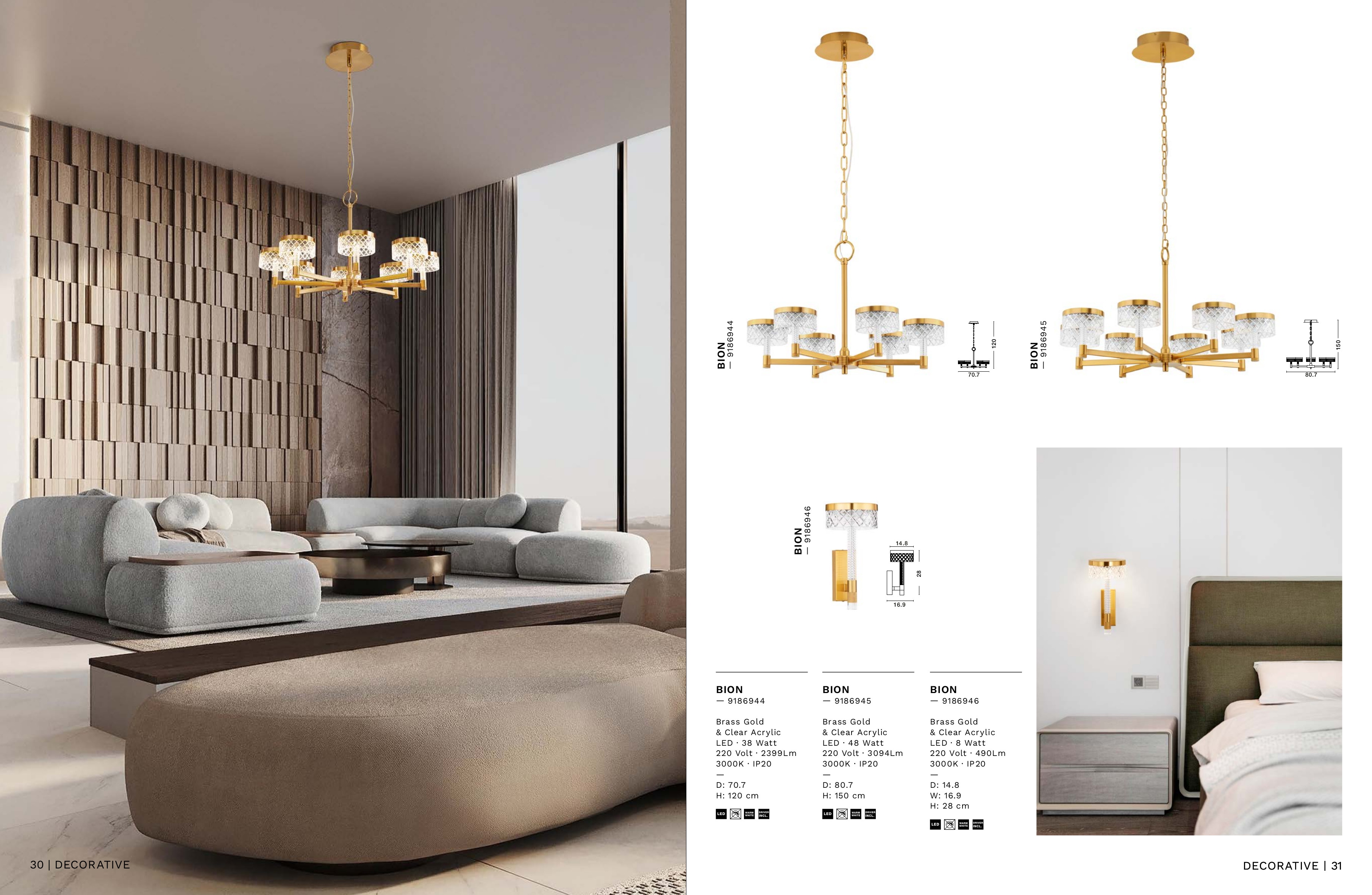 Лед полилей 9186945 ще осигури комфорт и естетика във всяко помещение, в което се постави. Цялостната визия и дизайн на led лампата и вложените в изработката й материали, като метал в цвят златен месинг, релефен, прозрачен акрил, ще допринесат за един неповторим стил. Благодарение на дългогодишния опит в производството на лед осветление, качествените материали и строгия контрол на качеството на изработка на производителя Nova-Luce (Гърция), 9186945 е на високо европейско ниво.