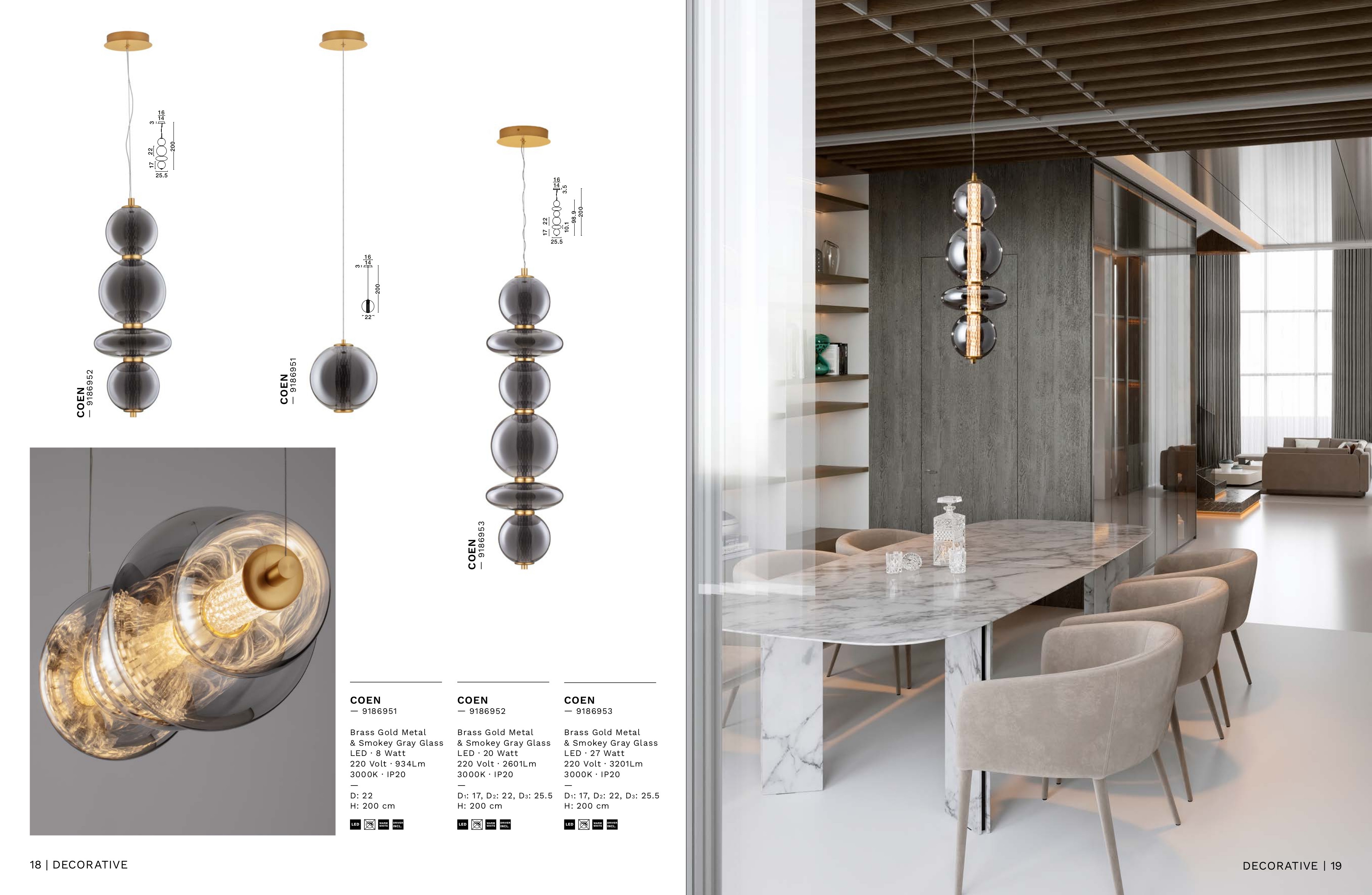 Лед пендел 9186953 ще осигури комфорт и естетика във всяко помещение, в което се постави. Цялостната визия и дизайн на led лампата и вложените в изработката й материали, като метал в цвят златен месинг, стъкло в опушено сиво, ще допринесат за един неповторим стил. Благодарение на дългогодишния опит в производството на лед осветление, качествените материали и строгия контрол на качеството на изработка на производителя Nova-Luce (Гърция), 9186953 е на високо европейско ниво.