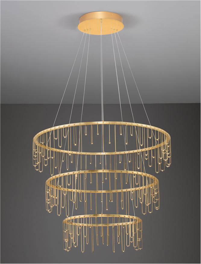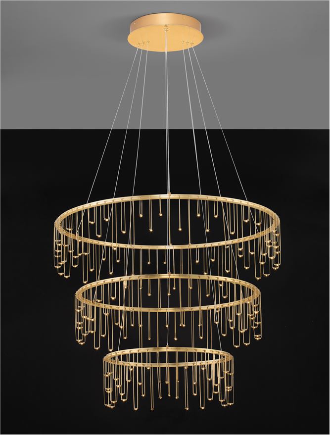 Изпълненото в съвременен, дизайнерски стил осветителното тяло 9186970 е един чудесен кандидат за постигане на изискан баланс между осветеност и визия във Вашето осветление за хол. Вложените в изработката материали (мед в цвят злато), заедно с цялостния дизайн и излъчване на лампата ще допринесат за подобряване на обстановката и естетиката в дома Ви. Осветителното тяло представлява полилей и може да бъде използвано за осветление в различни помещения и пространства като: всекидневна / хол, спалня, кухня, трапезария, офис. Качеството на изработката на Nova-Luce (Гърция) е на най-високо европейско ниво. Благодарение на дългогодишния опит в производството на почти всички видове осветителни тела за интериорно осветление, качествените материали, високотехнологичните методи на производство и многостепенния контрол, осветителното тяло притежава отлични характеристики.