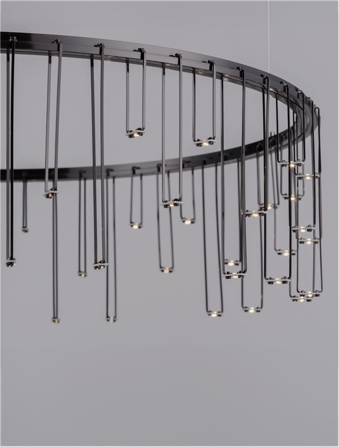 Осветителното тяло 9186975 представлява полилей в съвременен, дизайнерски стил. 9186975 е от категорията осветителни тела и е подходящо за осветяване на различни помещения и пространства като: всекидневна / хол, спалня, кухня, трапезария, офис.