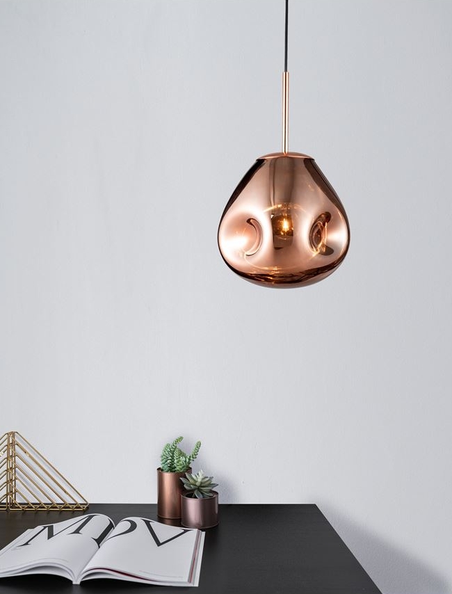 Стилът и естетиката на обстановката ще се обогатят благодарение, както на цялостната визия и дизайн на осветителното тяло, така и на вложените в изработката му, качествени материали, като: метал в цвят мед, ръчно помеднено стъкло.