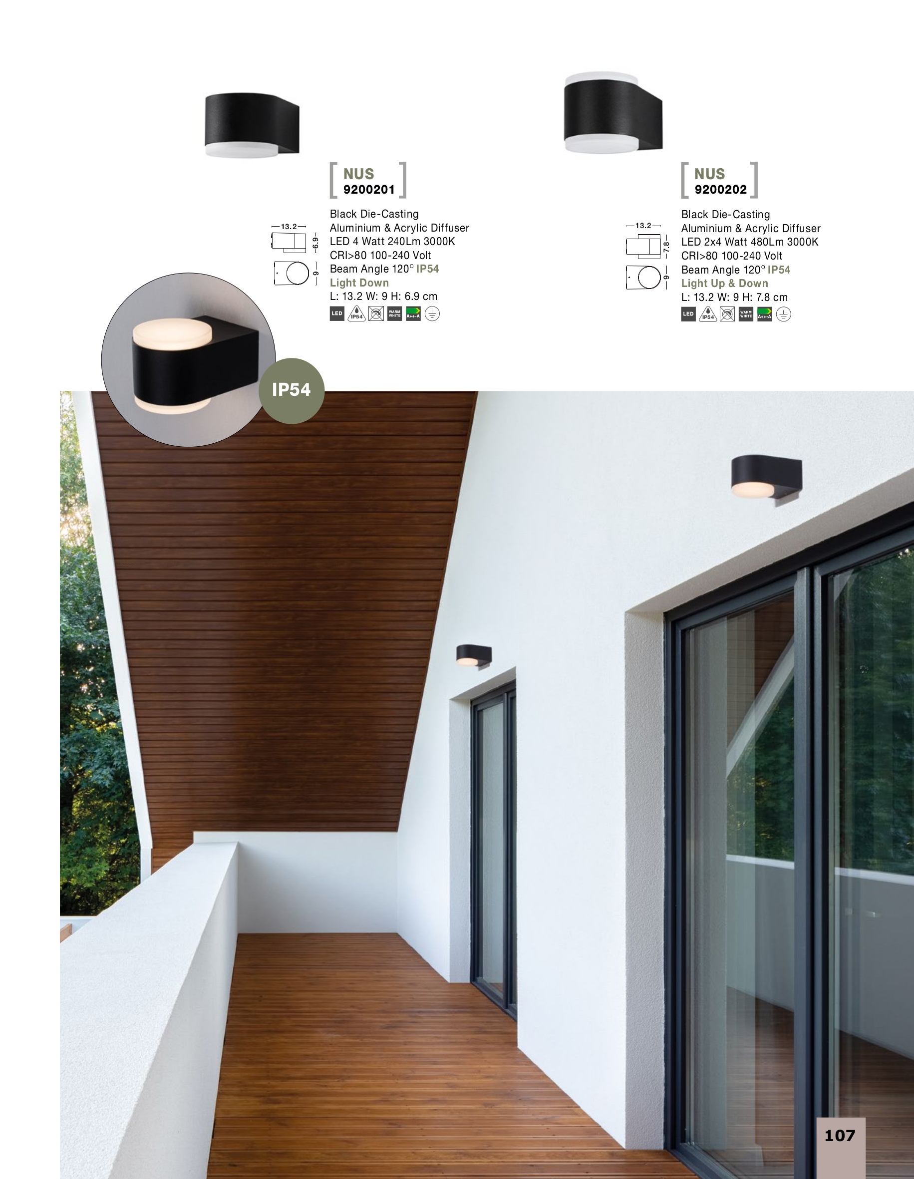 Осветителното тяло 9200202 представлява аплик, външна лампа в съвременен стил. 9200202 е от категорията осветителни тела и е подходящо за осветяване на различни помещения и пространства като: външно осветление, фасадно осветление.