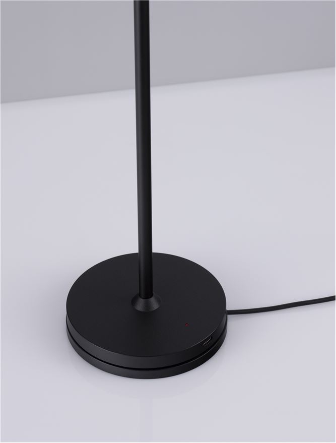 Стилът и естетиката на обстановката ще бъдат облагородени, както от цялостната визия и дизайн на осветителното тяло, така и от вложените в изработката на лампата висококачествени материали, като: алуминий в цвят черен мат, полимер в бяло, ключ ON/OFF, два различни типа на зареждане - база за зареждане или кабел с USB тип С, купуват се отделно.