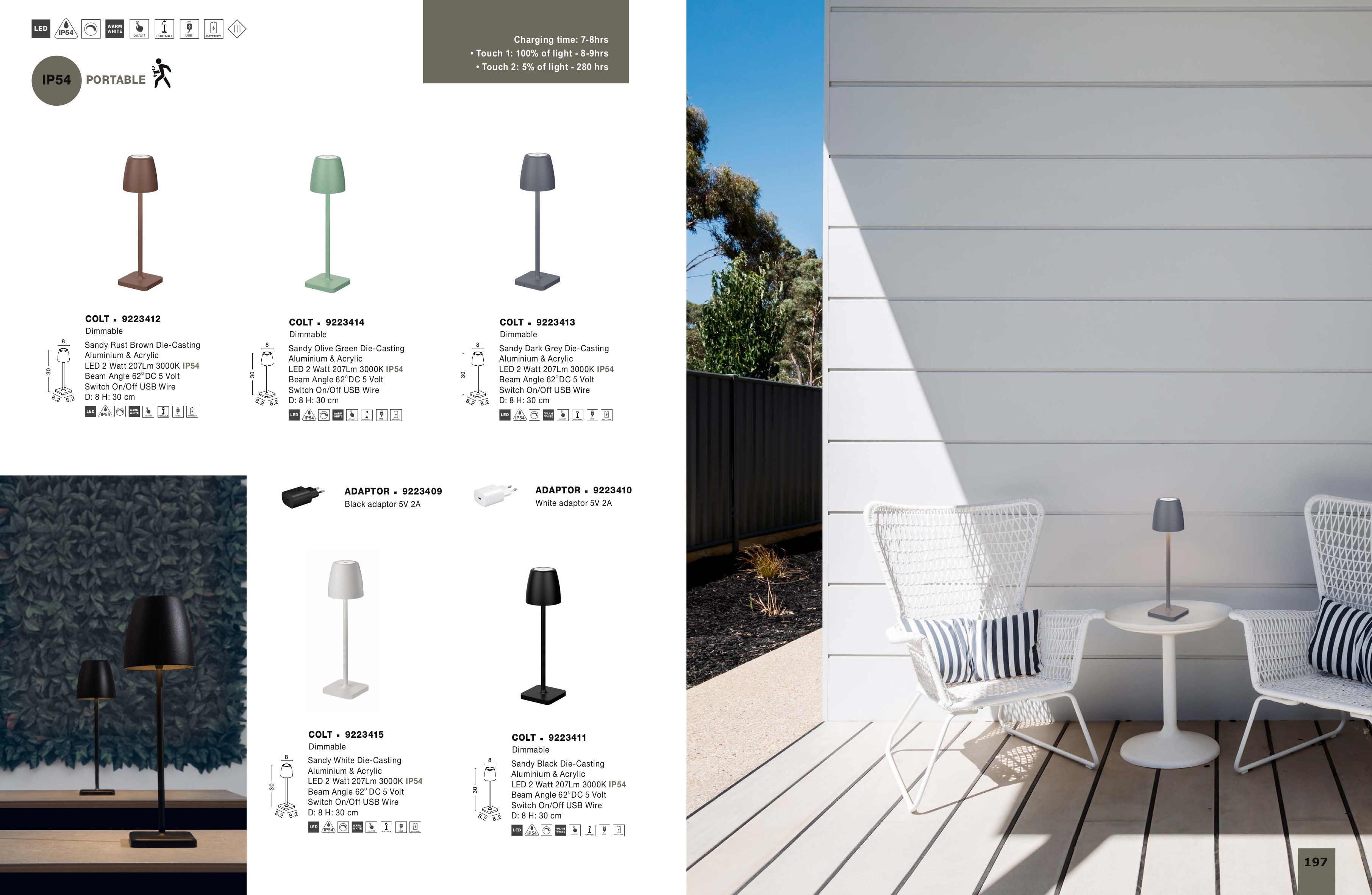 Лед настолна лампа, външна лампа 9223415 ще осигури комфорт и естетика във всяко помещение, в което се постави. Цялостната визия и дизайн на led лампата и вложените в изработката й материали, като матово бял отлят алуминий, полимер в бяло, ключ ON/OFF, зареждаема преносима лампа с USB кабел и адаптор, който се закупува отделно, ще допринесат за един неповторим стил. Благодарение на дългогодишния опит в производството на лед осветление, качествените материали и строгия контрол на качеството на изработка на производителя Nova-Luce (Гърция), 9223415 е на високо европейско ниво.
