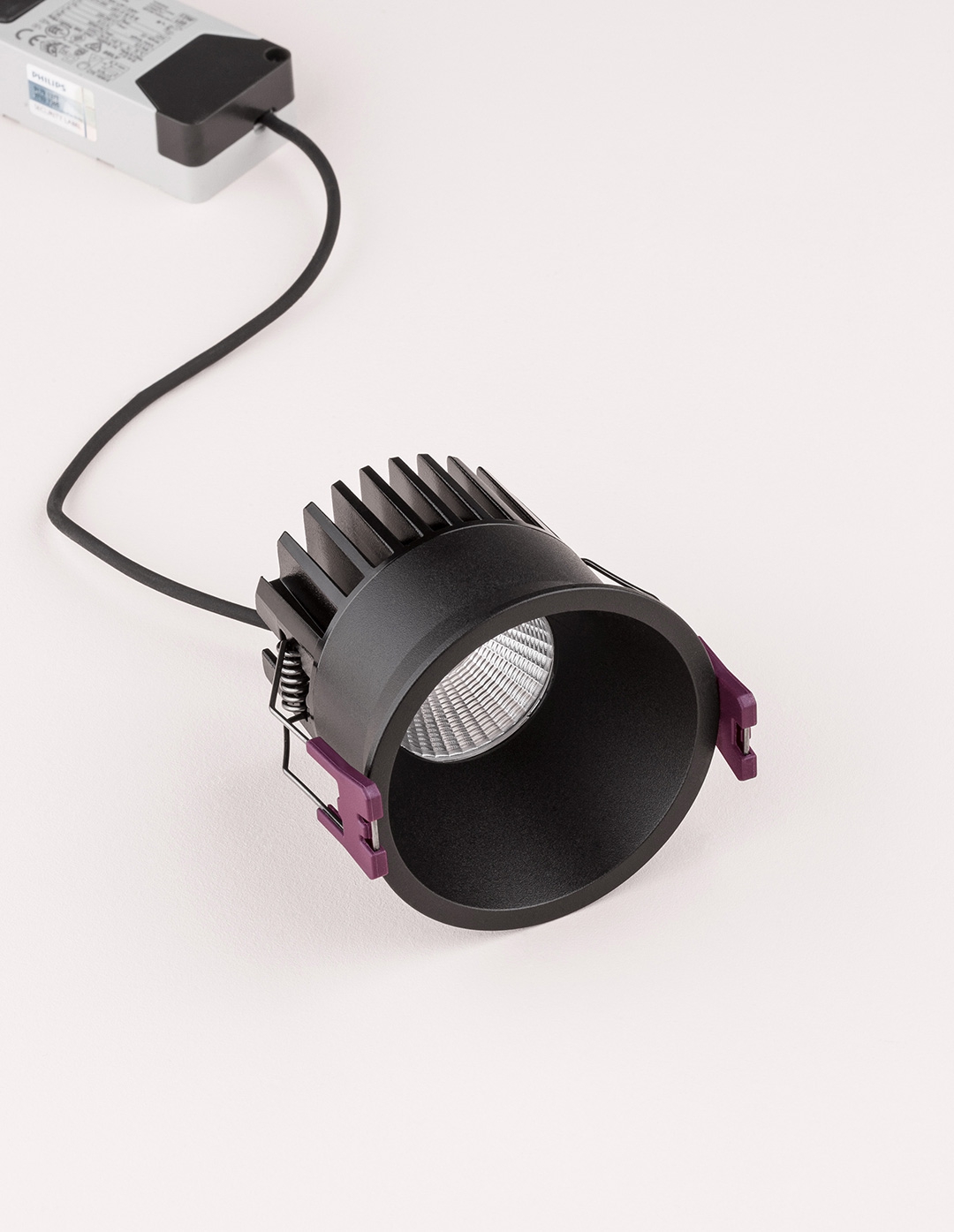 За стила, хармонията и естетиката на обстановката допринасят, както цялостната визия и дизайн на осветителното тяло, така и вложените в изработката качествени материали, като: алуминий в черен цвят.