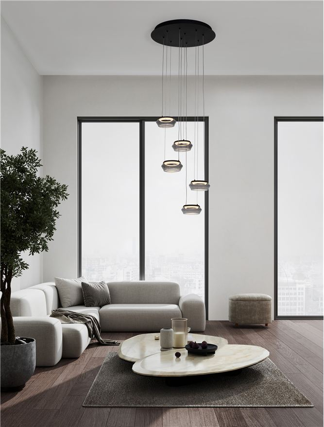 Осветителното тяло 9236103 представлява полилей в съвременен, дизайнерски стил. 9236103 е от категорията осветителни тела и е подходящо за осветяване на различни помещения и пространства като: всекидневна / хол, спалня, кухня, трапезария, офис.