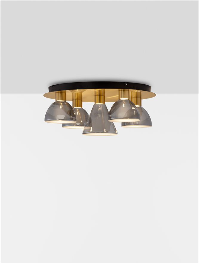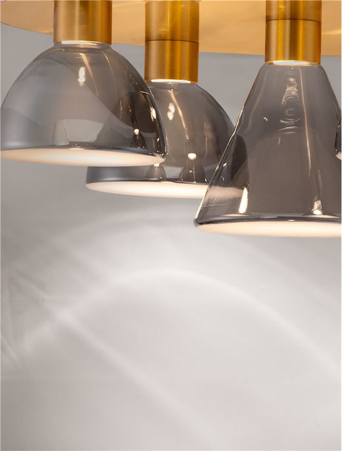 Осветителното тяло 9236310 ще осигури комфорт и естетика във всяко помещение, в което се постави. Цялостната визия и дизайн на лампата и вложените в изработката й материали, като метал с покритие от златен месинг, градиентно опушено стъкло, ще допринесат за един неповторим стил. Благодарение на дългогодишния опит, качествените материали и строгия контрол на качеството на изработка на производителя Nova-Luce (Гърция), 9236310 е на високо европейско ниво.
