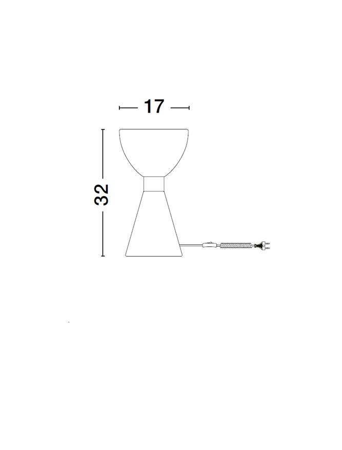 метал в цвят златен месинг, опушено стъкло, захранващ кабел с щепсел и ключ ON/OFF