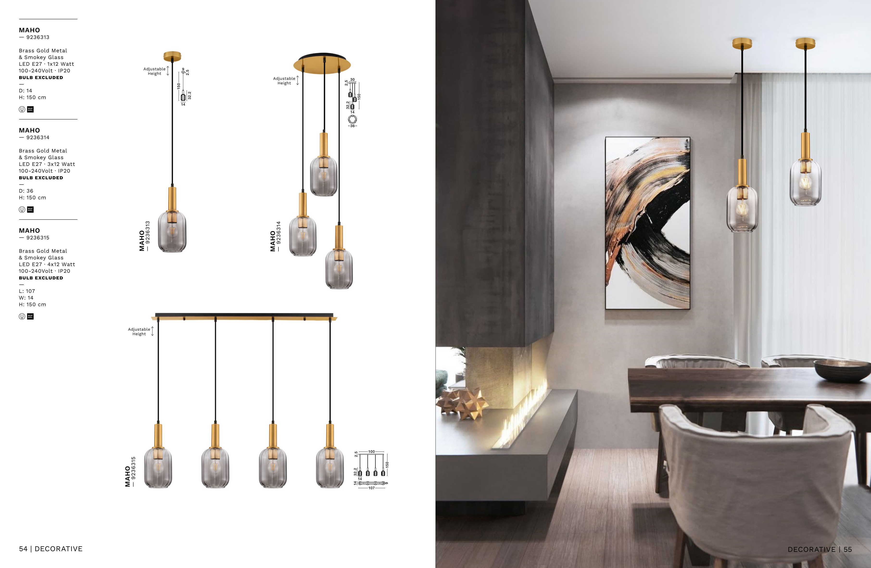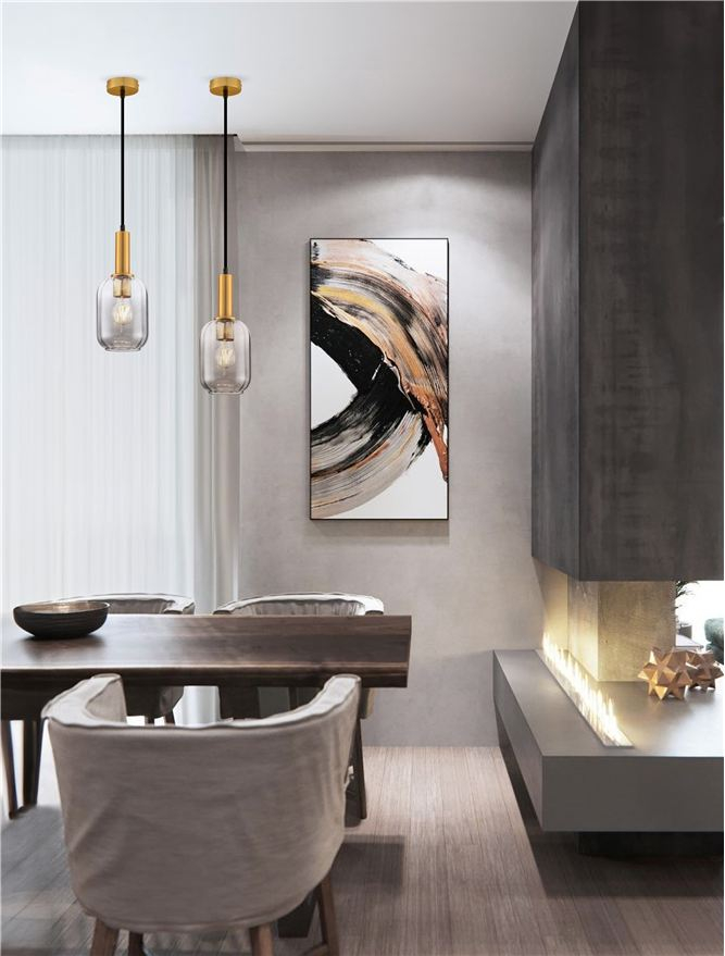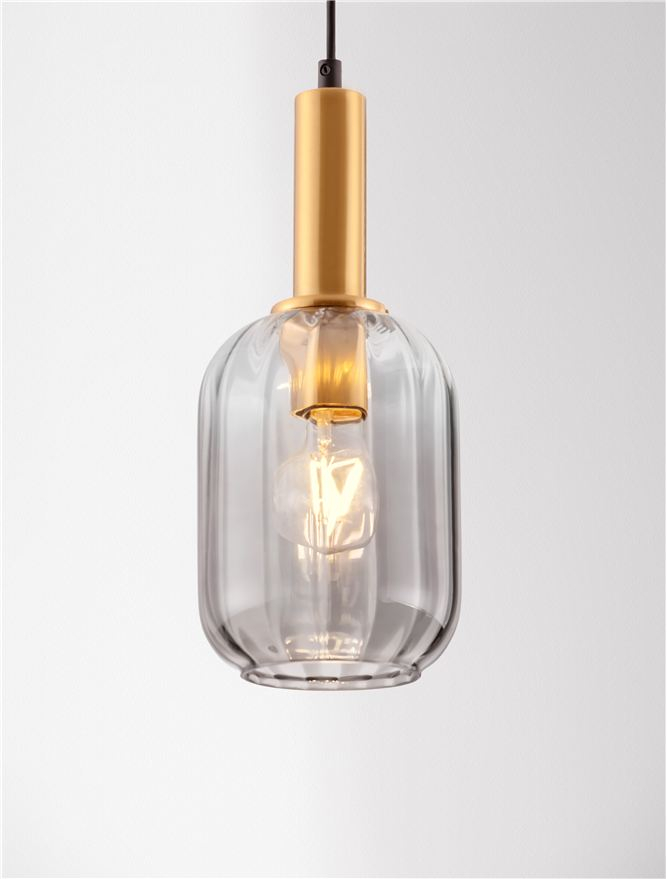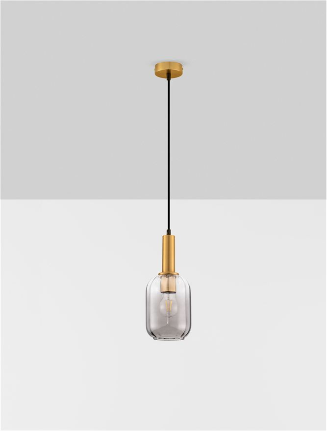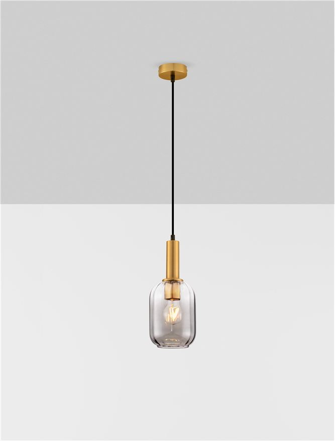 Стилът и естетиката на обстановката ще се обогатят благодарение, както на цялостната визия и дизайн на осветителното тяло, така и на вложените в изработката му, качествени материали, като: метал с покритие с цвят златен месинг, опушено стъкло.