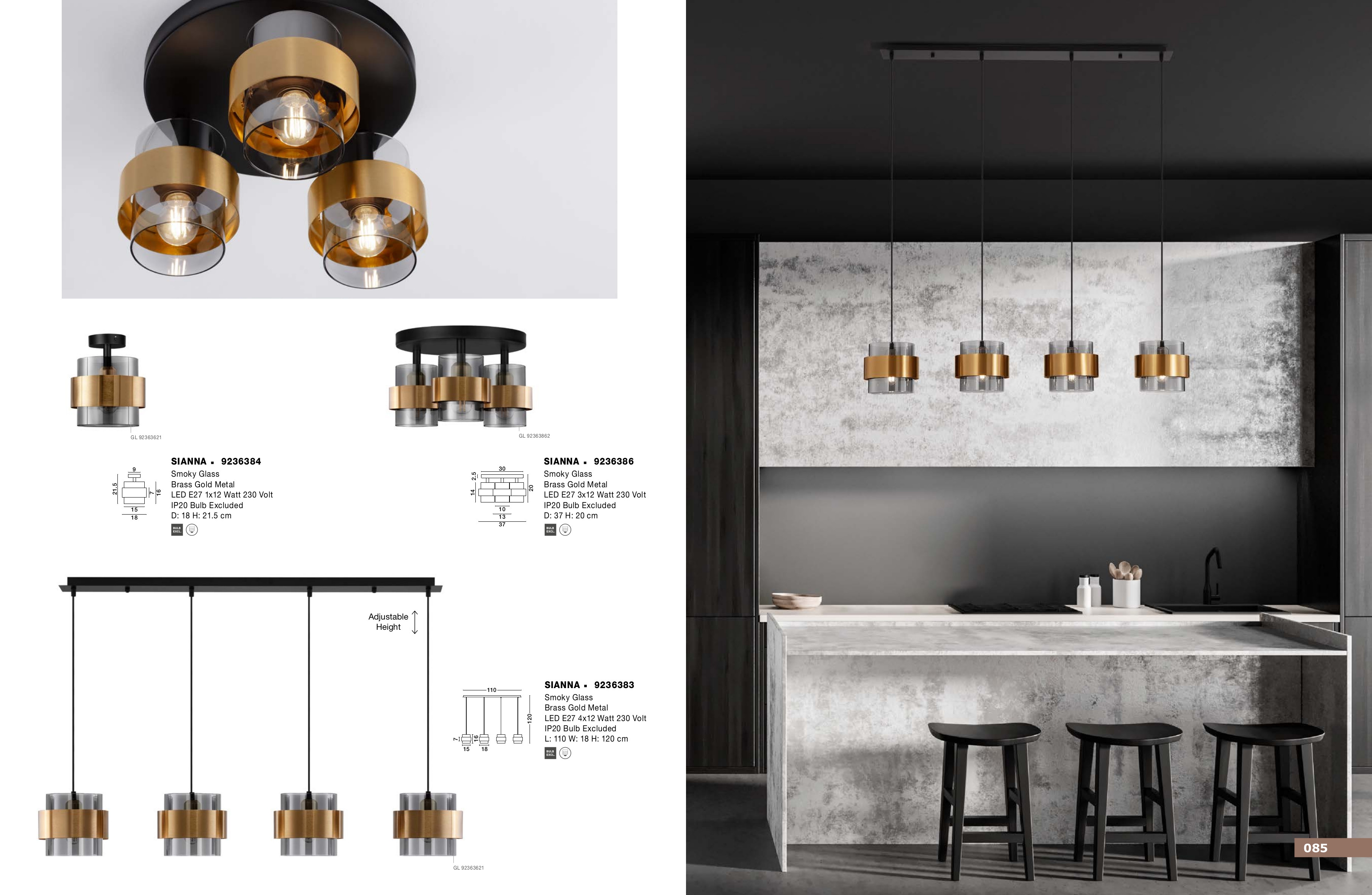 Осветителното тяло 9236383 ще осигури комфорт и естетика във всяко помещение, в което се постави. Цялостната визия и дизайн на лампата и вложените в изработката й материали, като опушено стъкло, метал в цвят златен месинг, метал в черно, ще допринесат за един неповторим стил. Благодарение на дългогодишния опит, качествените материали и строгия контрол на качеството на изработка на производителя Nova-Luce (Гърция), 9236383 е на високо европейско ниво.