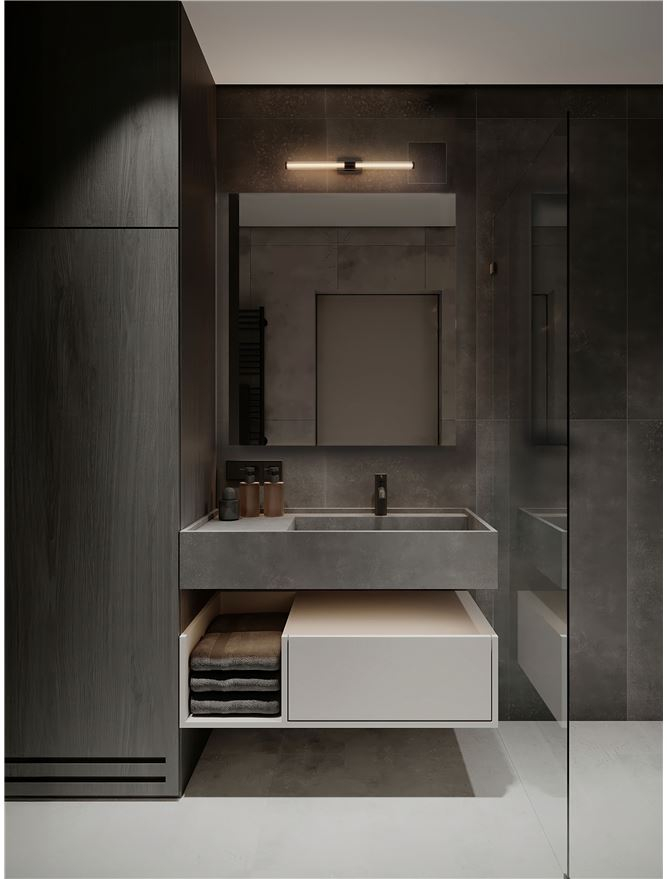 прозрачно стъкло, метал в цвят черен мат, полимер