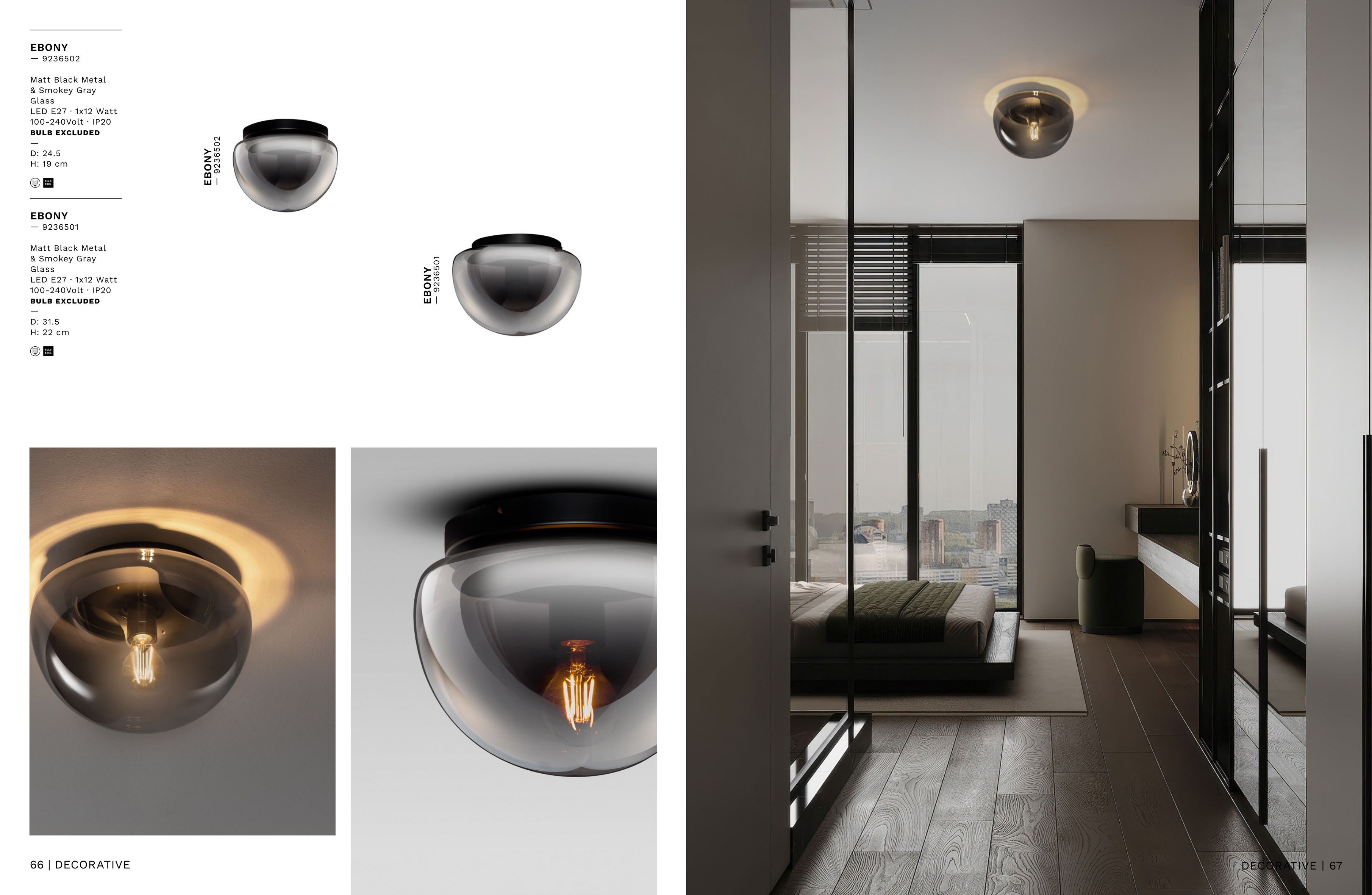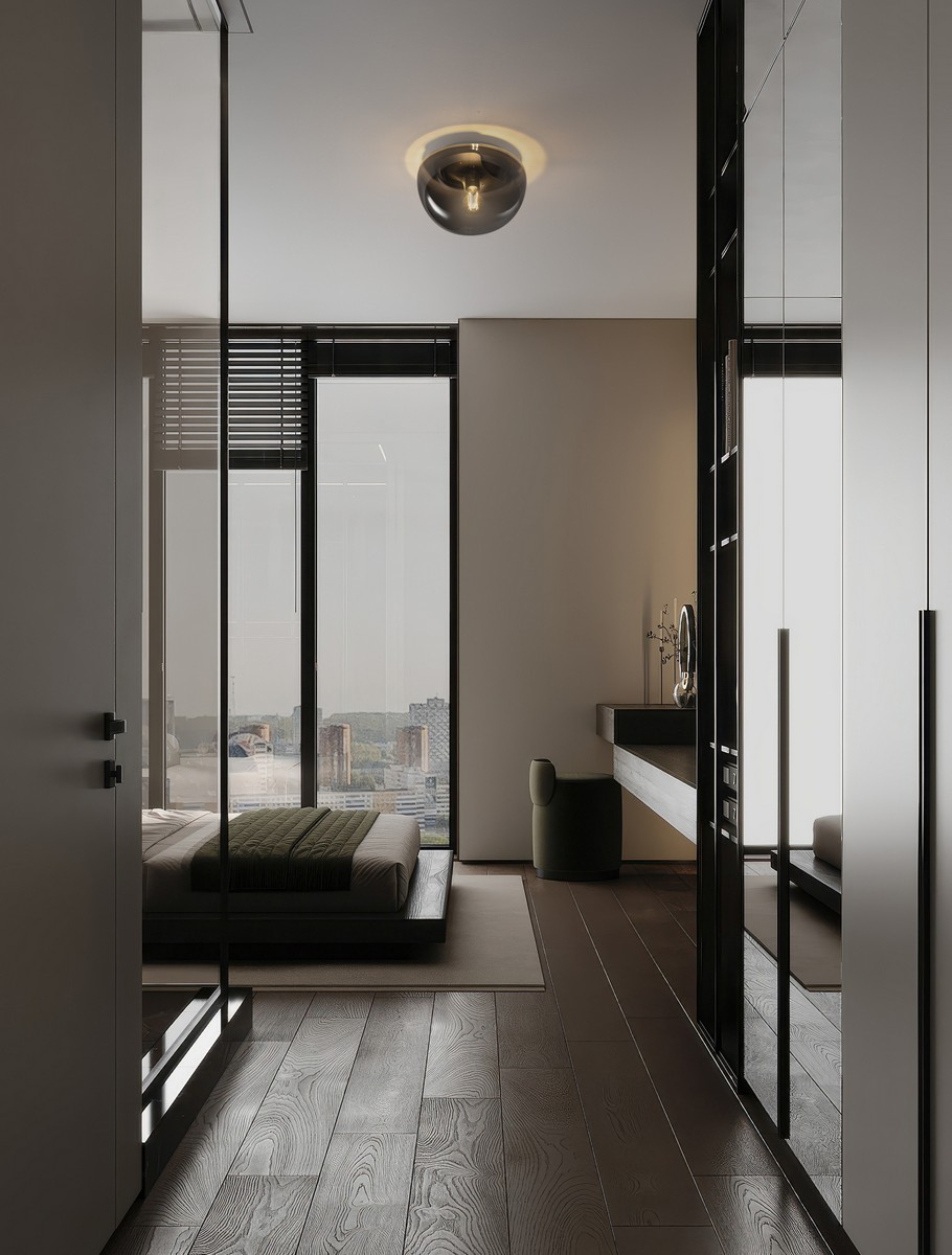 За стила и естетиката на интериора в изключително висока степен допринасят, както цялостната визия и дизайн на осветителното тяло, така и вложените в изработката висококачествени материали, като матово черен метал, опушено стъкло.