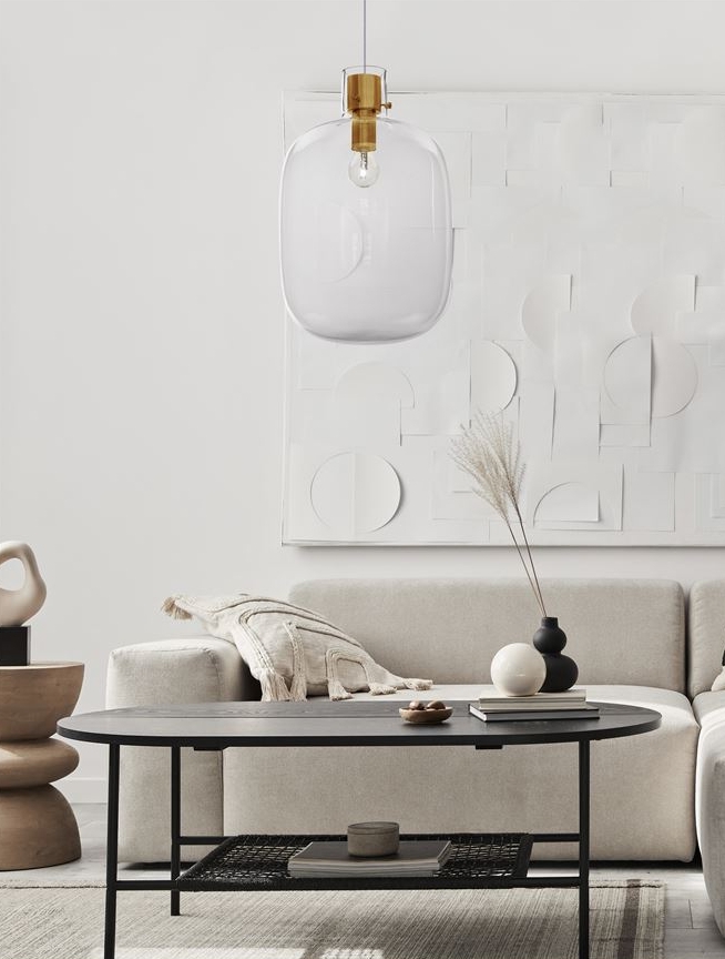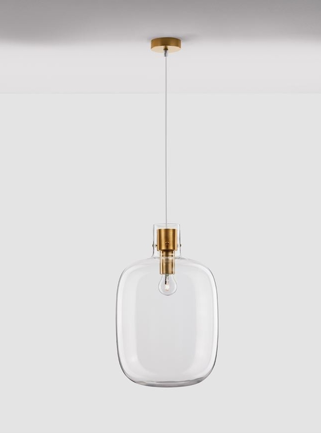 Стилът и естетиката на обстановката ще се обогатят благодарение, както на цялостната визия и дизайн на осветителното тяло, така и на вложените в изработката му, качествени материали, като: прозрачно стъкло, бял PVC кабел, метал в цвят златен месинг.