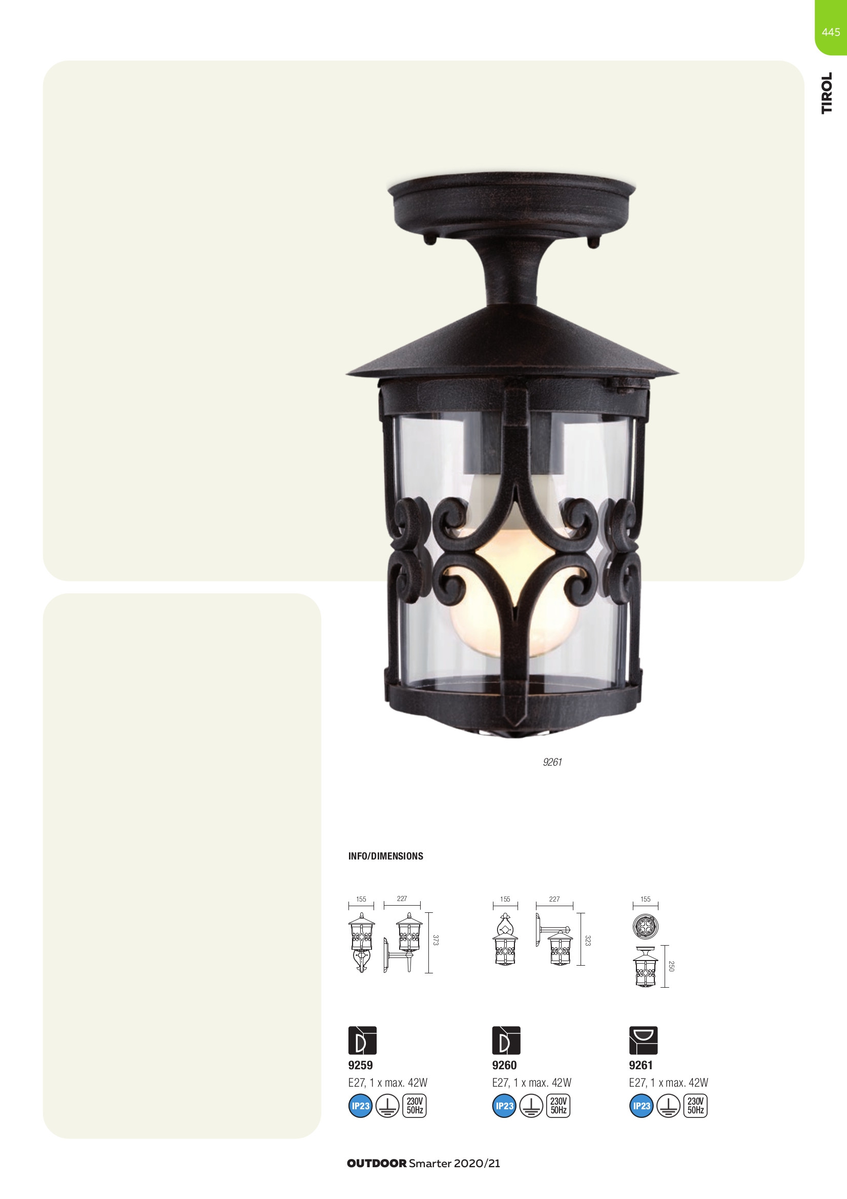 Осветителното тяло 9259 представлява аплик в класически стил. 9259 е от категорията осветителни тела и е подходящо за осветяване на различни помещения и пространства като: външно осветление, фасадно осветление.