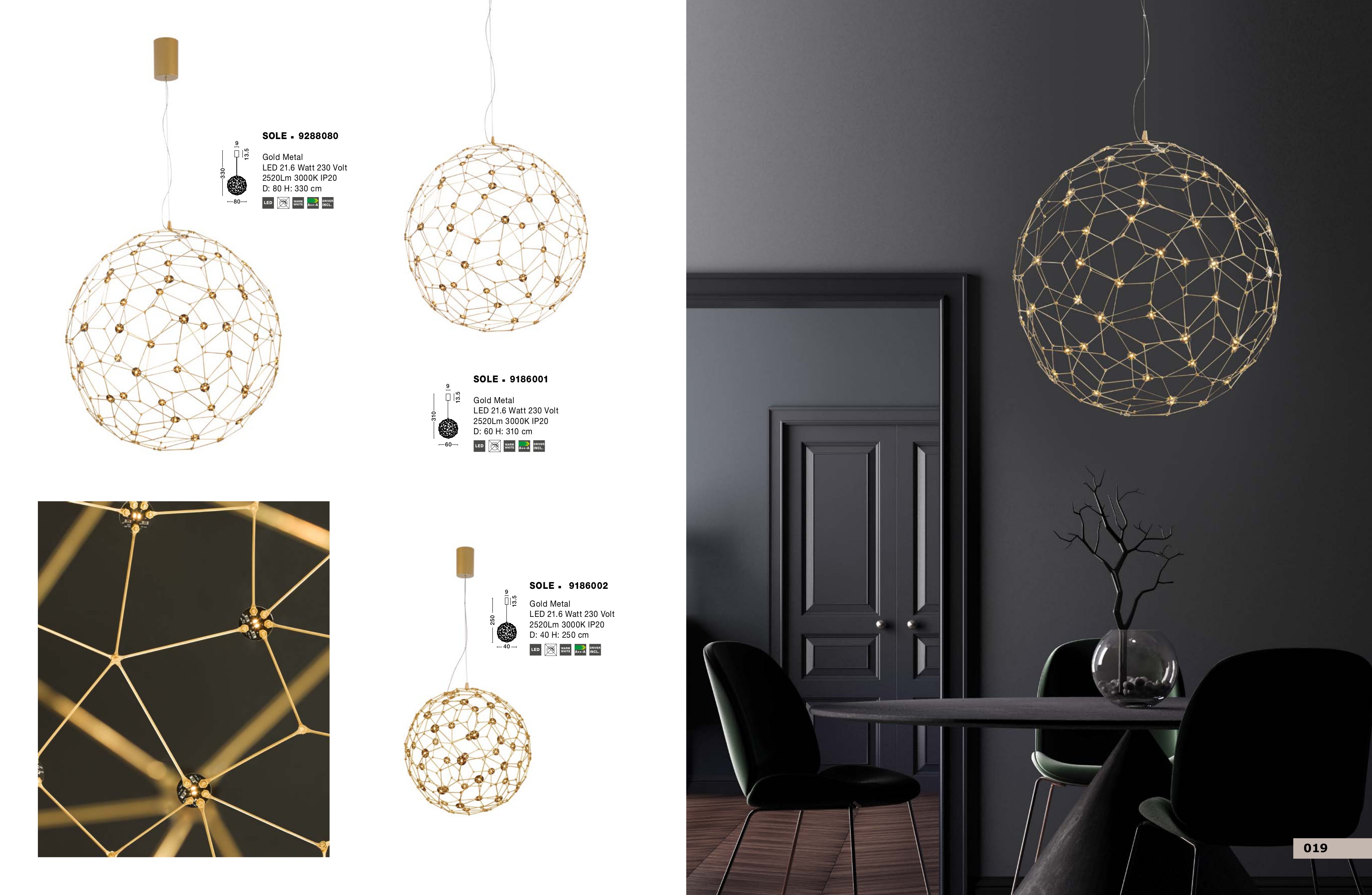 Лед полилей 9288080 ще осигури комфорт и естетика във всяко помещение, в което се постави. Цялостната визия и дизайн на led лампата и вложените в изработката й материали, като метал в цвят злато, ще допринесат за един неповторим стил. Благодарение на дългогодишния опит в производството на лед осветление, качествените материали и строгия контрол на качеството на изработка на производителя Nova-Luce (Гърция), 9288080 е на високо европейско ниво.