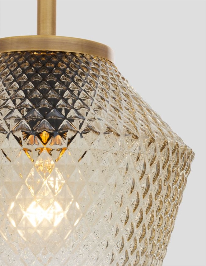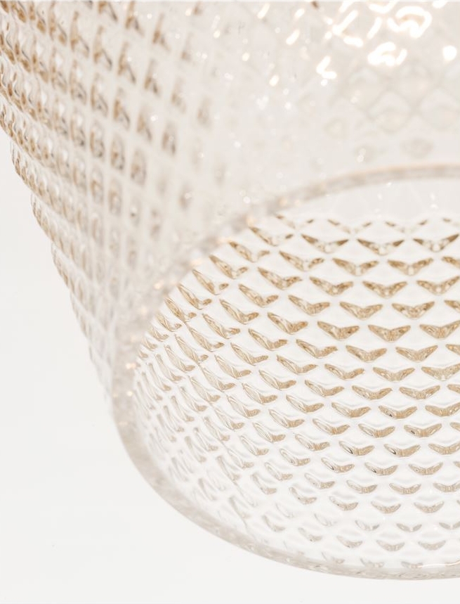 Стилът и естетиката на обстановката ще се обогатят благодарение, както на цялостната визия и дизайн на осветителното тяло, така и на вложените в изработката му, качествени материали, като: метал в цвят златен месинг, стъкло в цвят коняк.