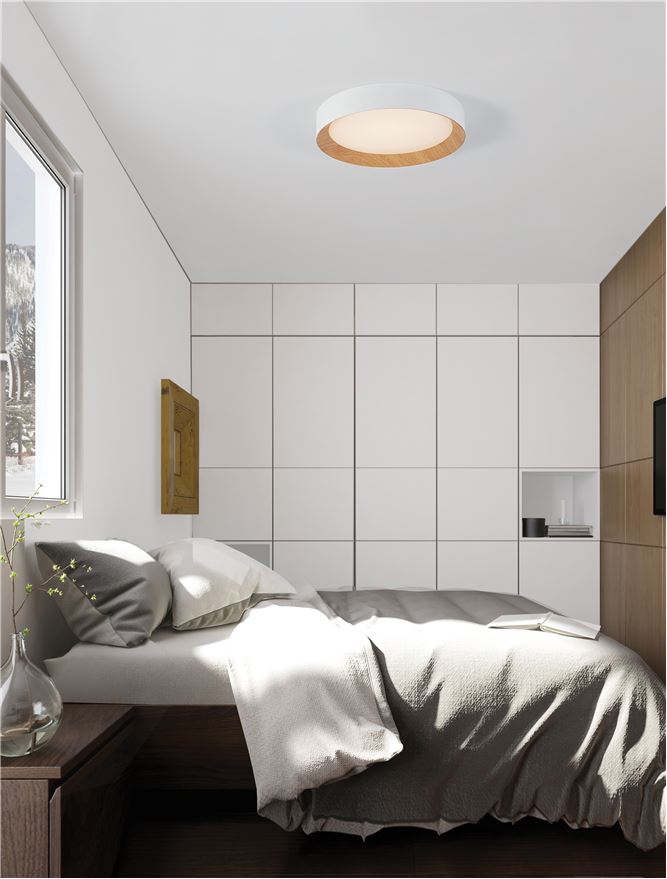 Лед плафон @9345621 (9345528) ще осигури комфорт и естетика във всяко помещение, в което се постави. Цялостната визия и дизайн на led лампата и вложените в изработката й материали, като алуминий в цвят пясъчно бяло, алуминий в цвят дъб, дифузер от полимер в бяло, ще допринесат за един неповторим стил. Благодарение на дългогодишния опит в производството на лед осветление, качествените материали и строгия контрол на качеството на изработка на производителя Nova-Luce (Гърция), @9345621 (9345528) е на високо европейско ниво.