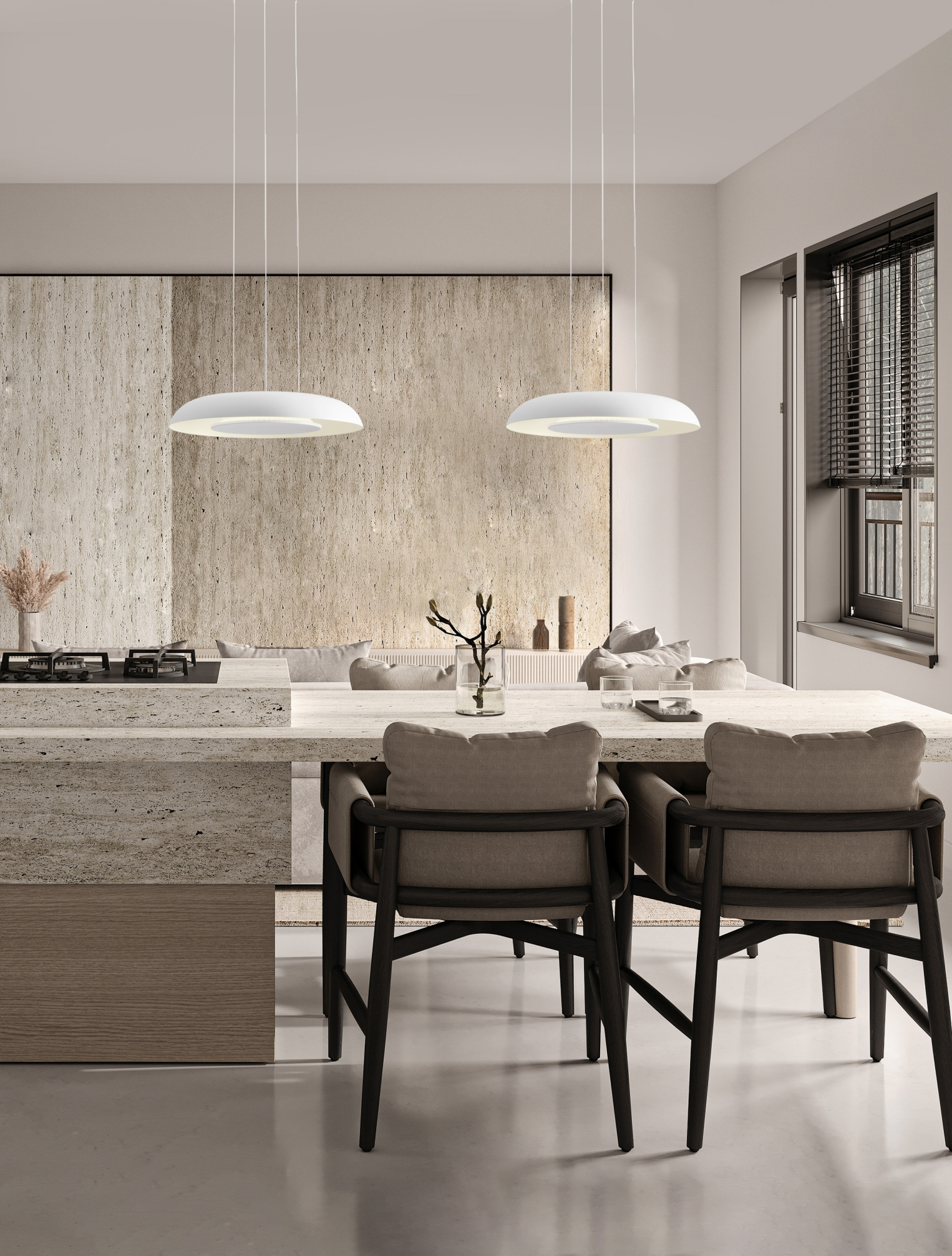 Осветителното тяло 9345708 ще осигури комфорт и естетика във всяко помещение, в което се постави. Цялостната визия и дизайн на лампата и вложените в изработката й материали, като алуминий в пясъчно бял цвят, полимер в бяло, смяна на цветната температура с интегриран ключ 2700-4000K, димиране с триак, ще допринесат за един неповторим стил. Благодарение на дългогодишния опит, качествените материали и строгия контрол на качеството на изработка на производителя Nova-Luce (Гърция), 9345708 е на високо европейско ниво.