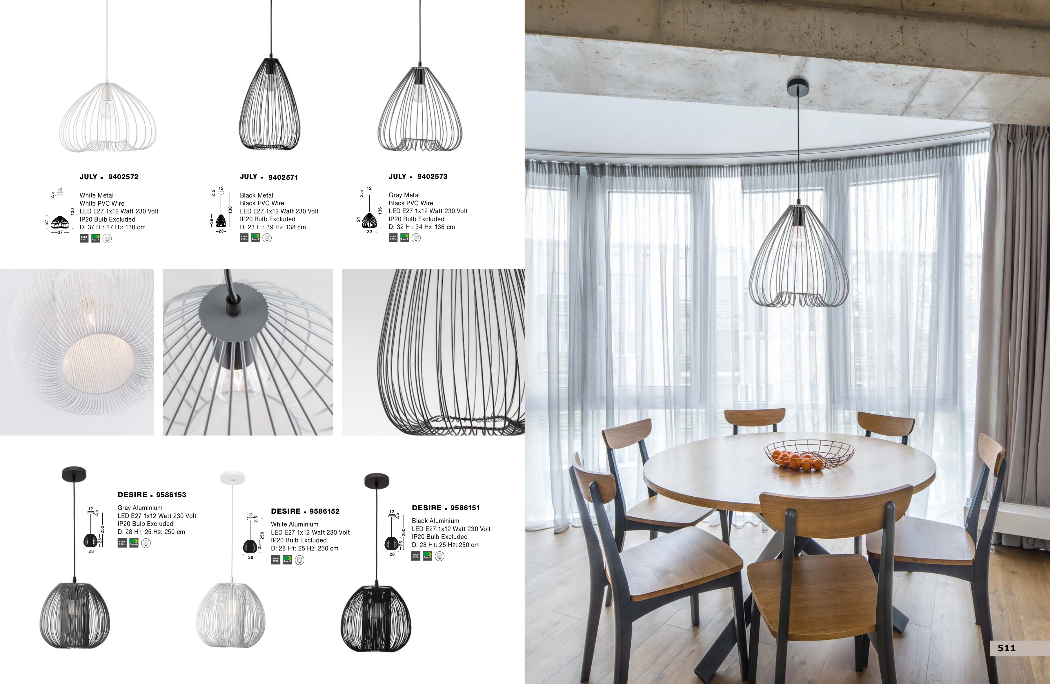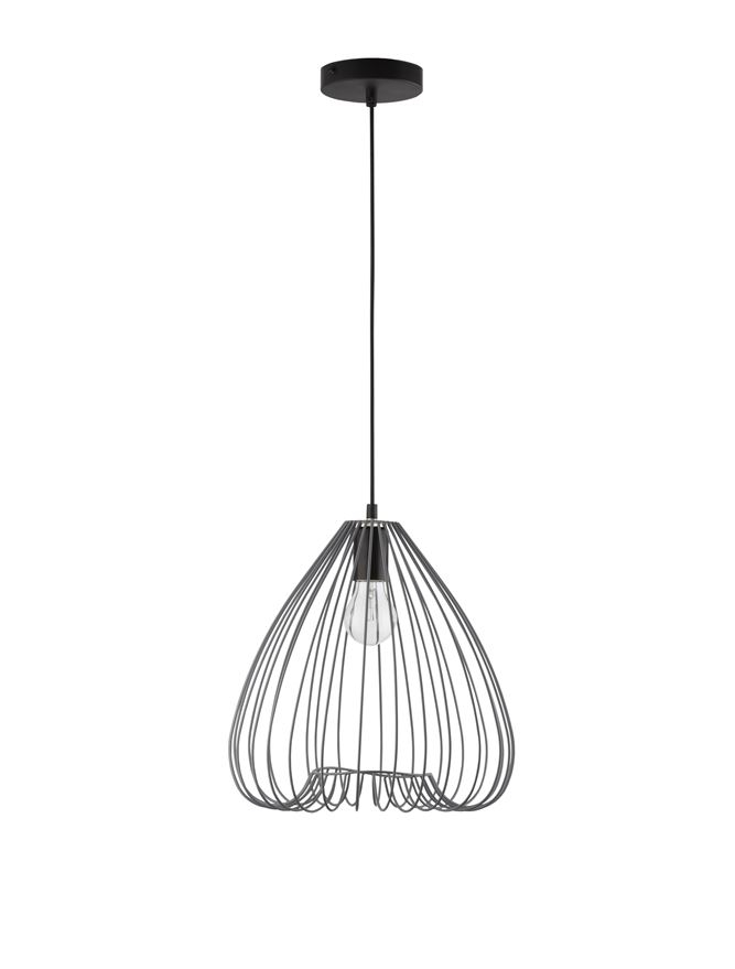 Стилът и естетиката на обстановката ще се обогатят благодарение, както на цялостната визия и дизайн на осветителното тяло, така и на вложените в изработката му, качествени материали, като: метал в сив цвят, черен PVC кабел.