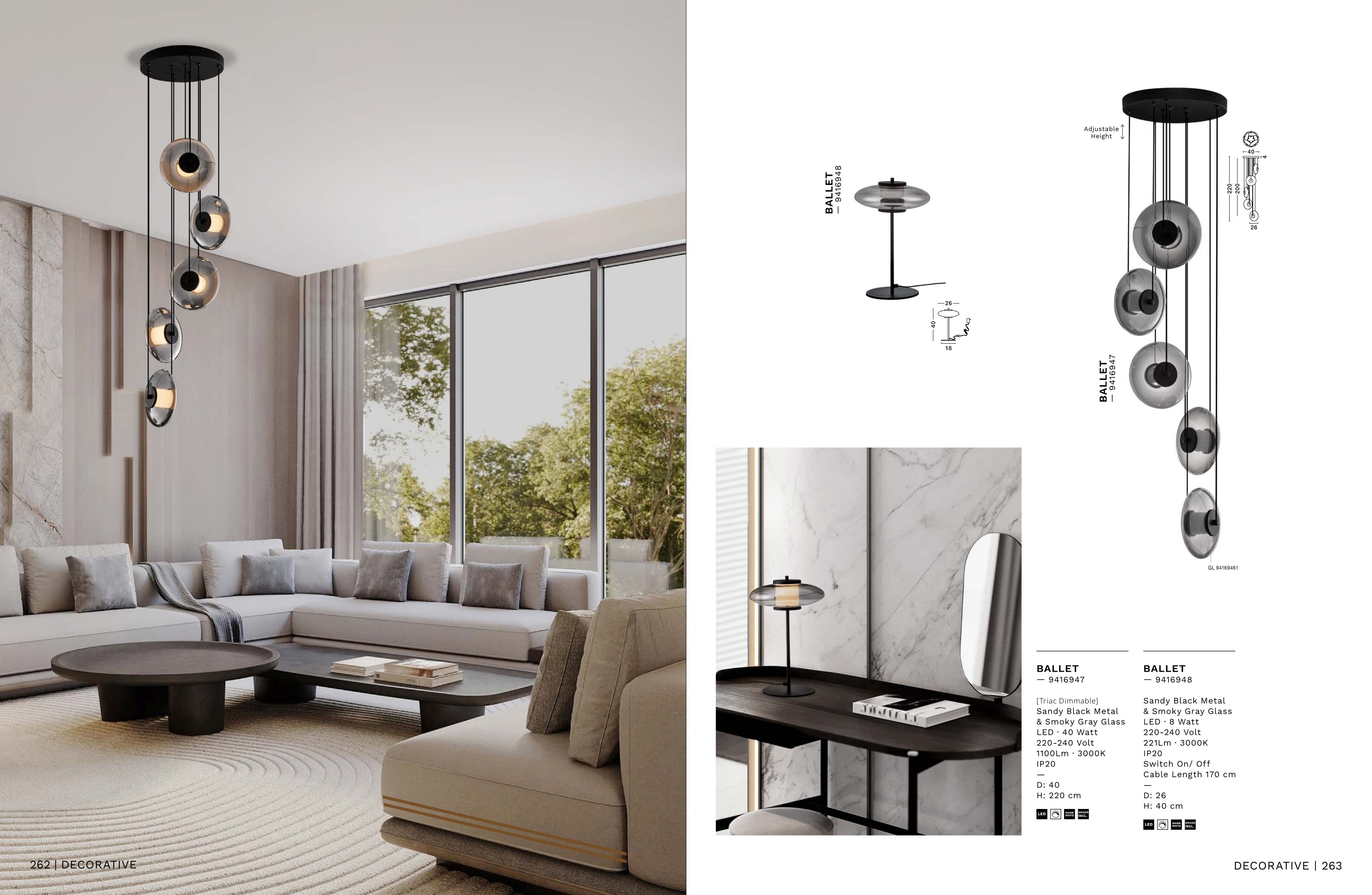 Осветителното тяло 9416947 ще осигури комфорт и естетика във всяко помещение, в което се постави. Цялостната визия и дизайн на лампата и вложените в изработката й материали, като метал в цвят пясъчно черно, опушено сиво стъкло, ще допринесат за един неповторим стил. Благодарение на дългогодишния опит, качествените материали и строгия контрол на качеството на изработка на производителя Nova-Luce (Гърция), 9416947 е на високо европейско ниво.