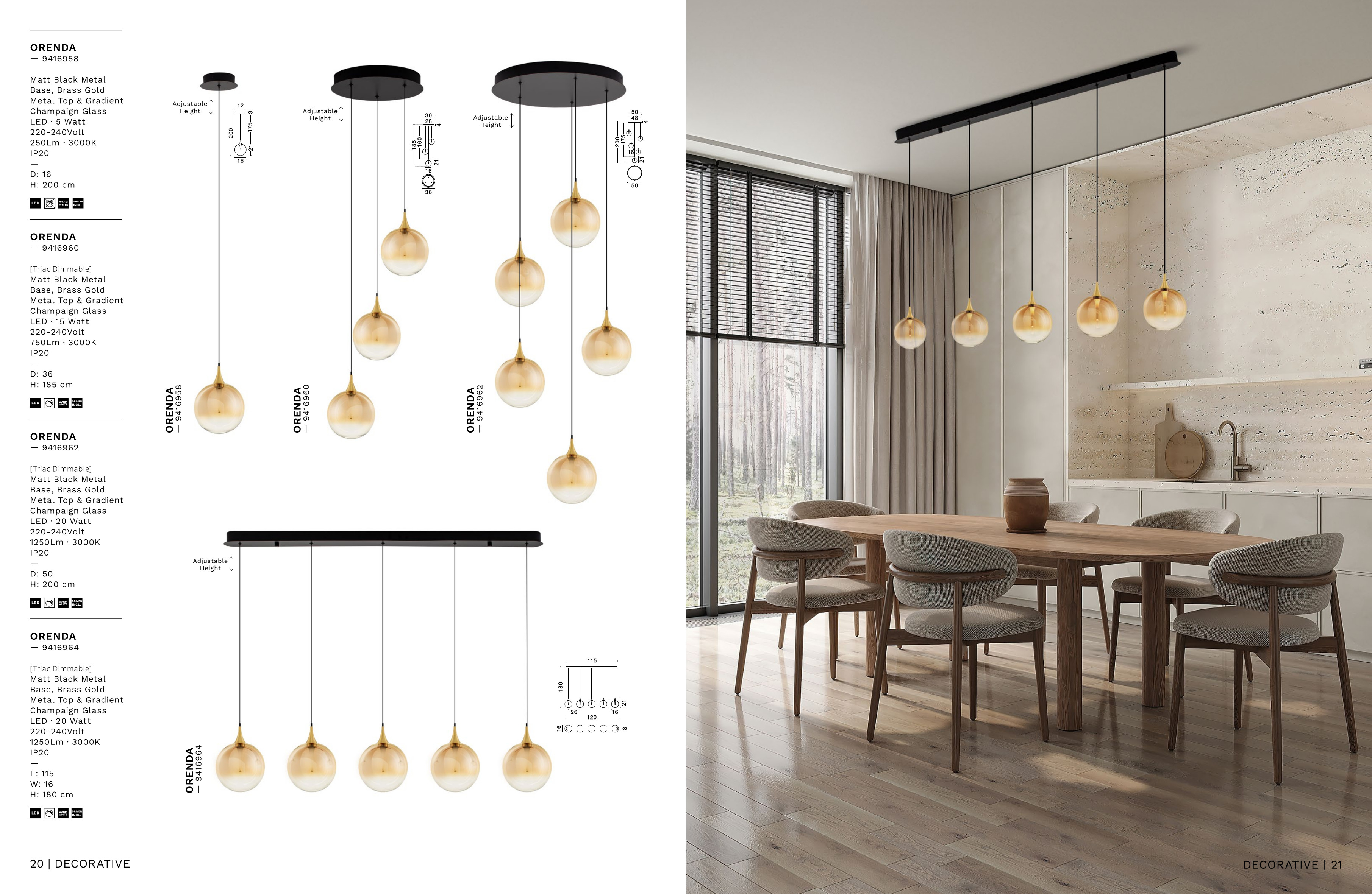 Осветителното тяло 9416960 представлява полилей в съвременен стил. 9416960 е от категорията осветителни тела и е подходящо за осветяване на различни помещения и пространства като: всекидневна / хол, спалня, кухня, трапезария, офис.