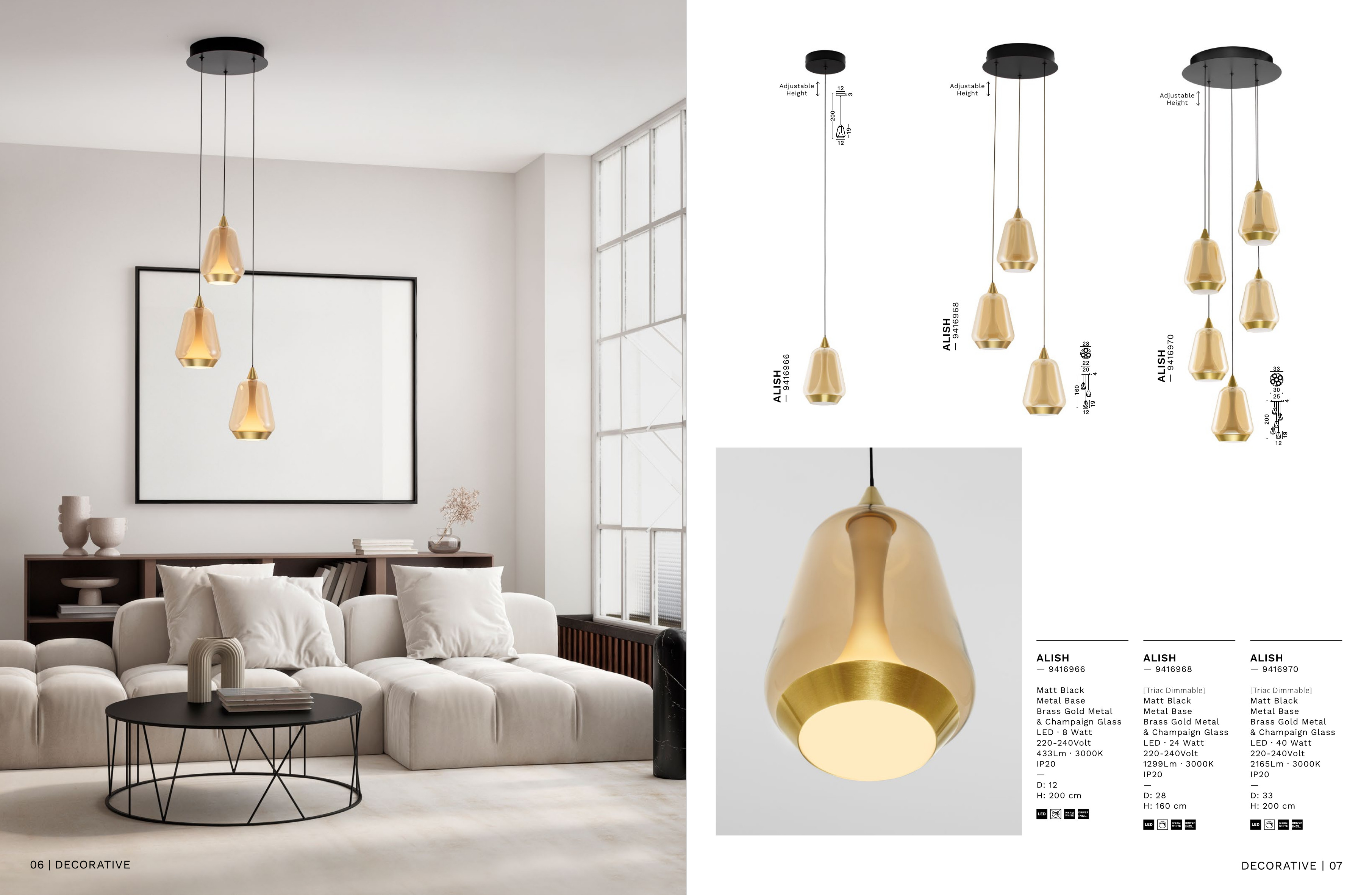 Осветителното тяло 9416968 ще осигури комфорт и естетика във всяко помещение, в което се постави. Цялостната визия и дизайн на лампата и вложените в изработката й материали, като метал в матово черен цвят, метал с покритие с цвят златен месинг, стъкло в цвят шампанско, ще допринесат за един неповторим стил. Благодарение на дългогодишния опит, качествените материали и строгия контрол на качеството на изработка на производителя Nova-Luce (Гърция), 9416968 е на високо европейско ниво.