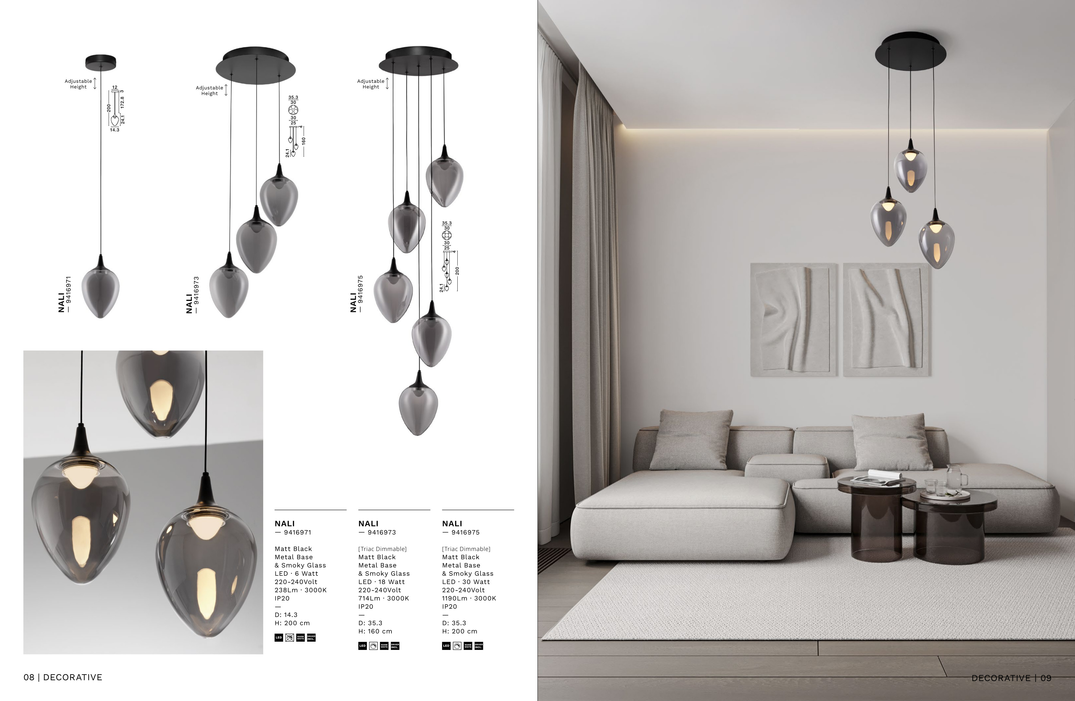 Лед полилей 9416975 ще осигури комфорт и естетика във всяко помещение, в което се постави. Цялостната визия и дизайн на led лампата и вложените в изработката й материали, като метал в матово черен цвят, опушено стъкло, ще допринесат за един неповторим стил. Благодарение на дългогодишния опит в производството на лед осветление, качествените материали и строгия контрол на качеството на изработка на производителя Nova-Luce (Гърция), 9416975 е на високо европейско ниво.