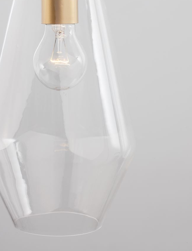 Стилът и естетиката на обстановката ще се обогатят благодарение, както на цялостната визия и дизайн на осветителното тяло, така и на вложените в изработката му, качествени материали, като: метал в цвят злато, прозрачно стъкло.