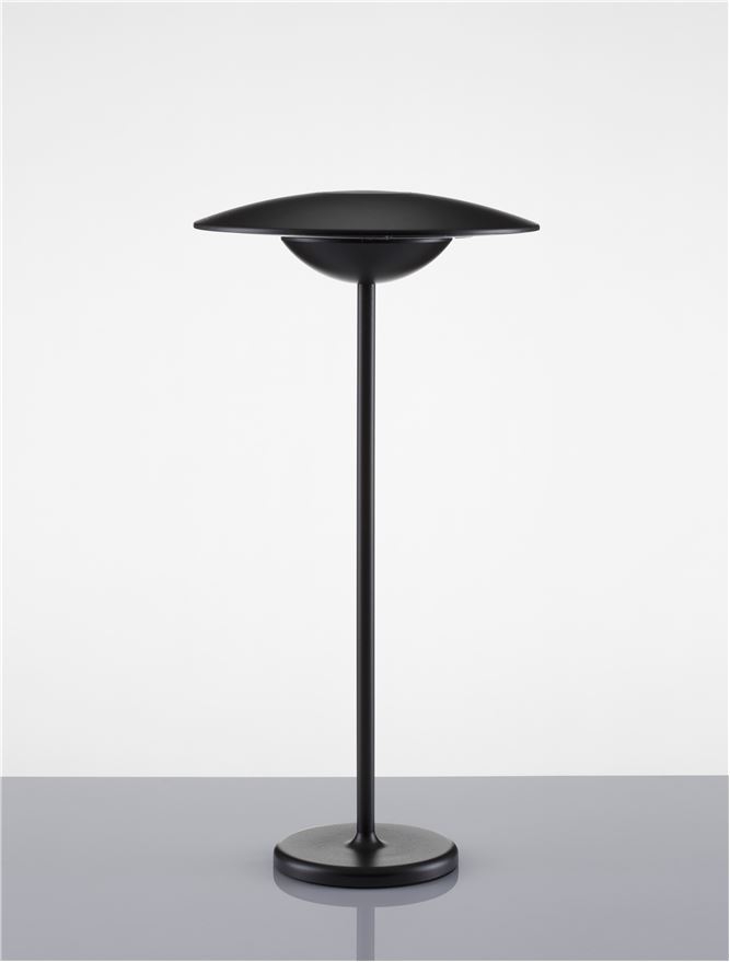 лят алуминий в черен цвят, полимер в бяло със скреж ефект, ключ ON/OFF, USB порт, време на зареждане на лампата 7-10 часа, touch контрол