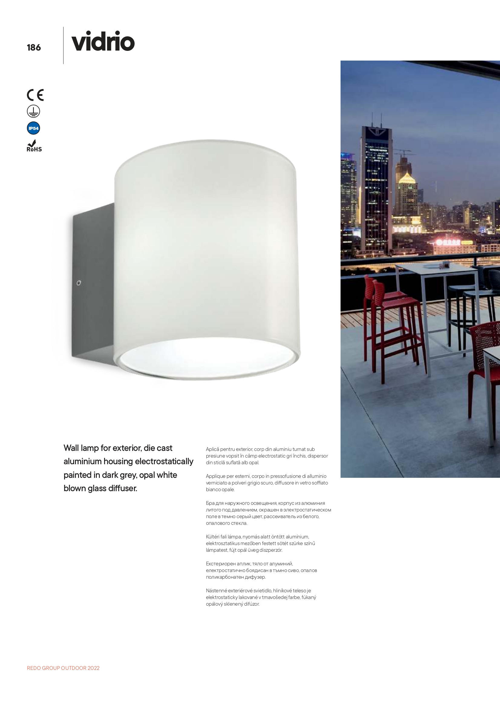 Производителят Redo (Румъния) притежава дългогодишен богат опит в областта на производството на осветителни тела от дизайнерската линия Redo Outdoor, което осигурява високо качество на изработка на богата гама осветителни тела на европейско ниво.