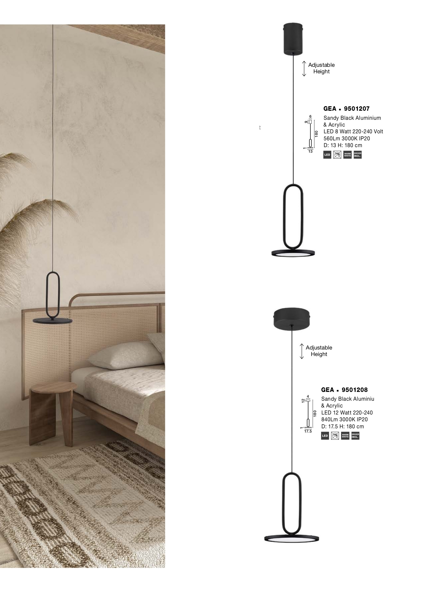 Осветителното тяло 9501208 представлява пендел в съвременен, дизайнерски стил. 9501208 е от категорията осветителни тела и е подходящо за осветяване на различни помещения и пространства като: всекидневна / хол, спалня, кухня, трапезария, коридор, антре, офис.