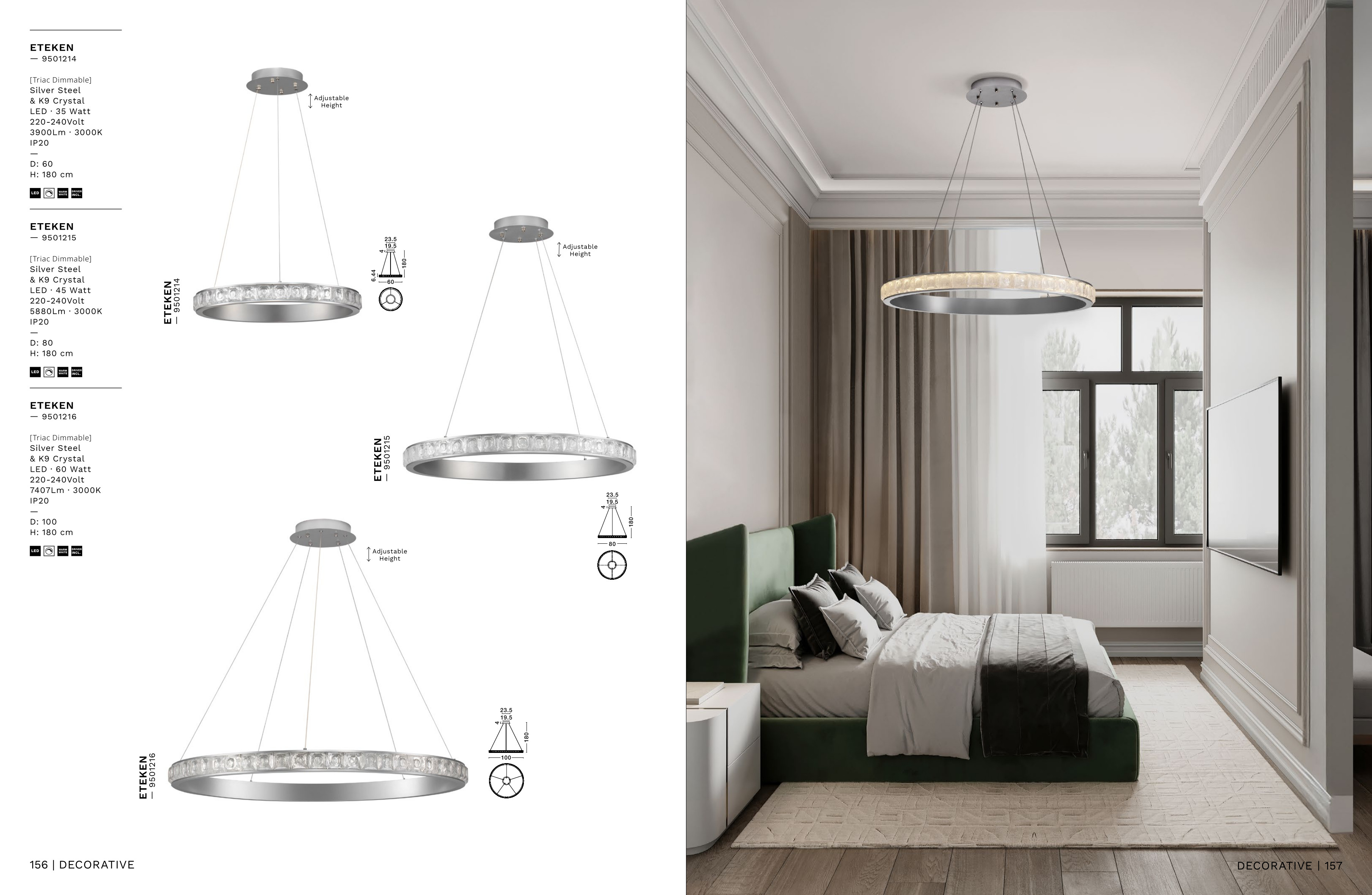 Лед полилей 9501215 ще осигури комфорт и естетика във всяко помещение, в което се постави. Цялостната визия и дизайн на led лампата и вложените в изработката й материали, като стомана в цвят сребро, кристали К9, ще допринесат за един неповторим стил. Благодарение на дългогодишния опит в производството на лед осветление, качествените материали и строгия контрол на качеството на изработка на производителя Nova-Luce (Гърция), 9501215 е на високо европейско ниво.