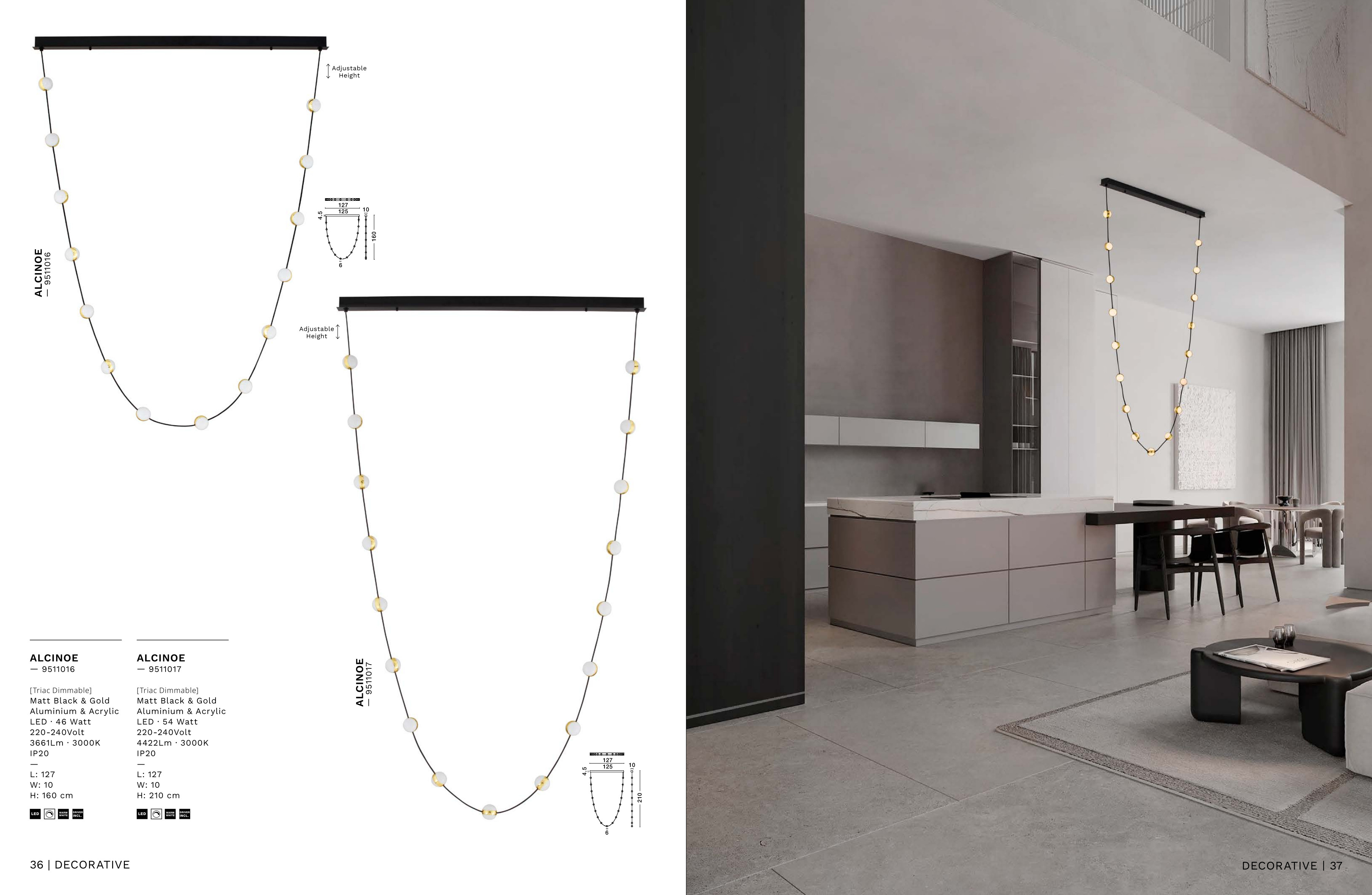 Осветителното тяло 9511017 ще осигури комфорт и естетика във всяко помещение, в което се постави. Цялостната визия и дизайн на лампата и вложените в изработката й материали, като алуминий в матово черно и златно, акрил в бяло, ще допринесат за един неповторим стил. Благодарение на дългогодишния опит, качествените материали и строгия контрол на качеството на изработка на производителя Nova-Luce (Гърция), 9511017 е на високо европейско ниво.