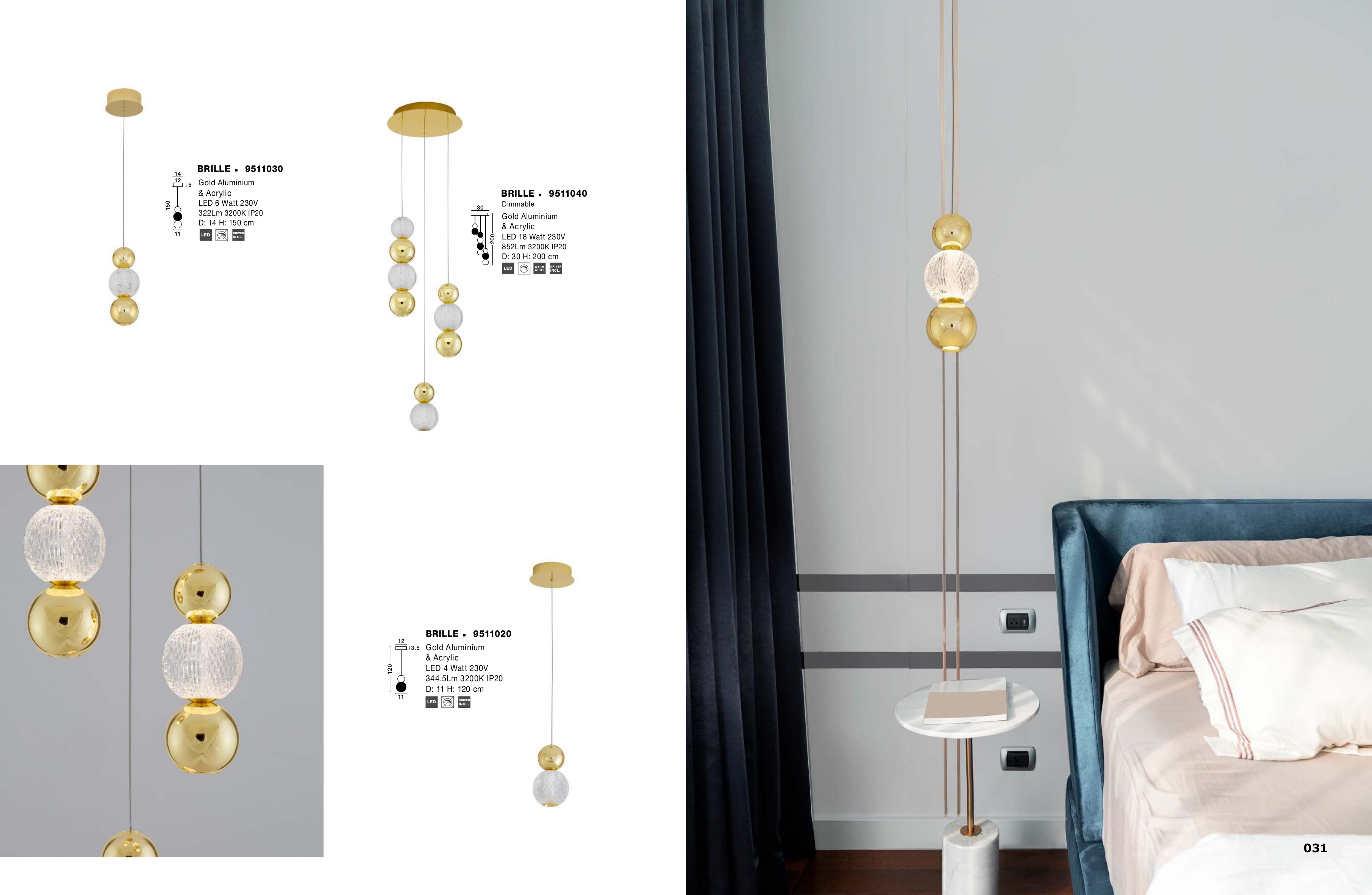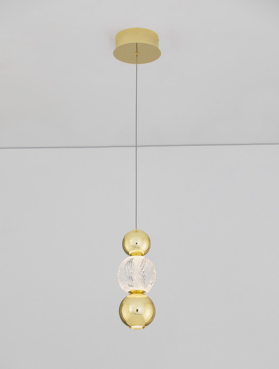 Лед пендел 9511030 ще осигури комфорт и естетика във всяко помещение, в което се постави. Цялостната визия и дизайн на led лампата и вложените в изработката й материали, като алуминий в цвят злато, прозрачен релефен акрил, ще допринесат за един неповторим стил. Благодарение на дългогодишния опит в производството на лед осветление, качествените материали и строгия контрол на качеството на изработка на производителя Nova-Luce (Гърция), 9511030 е на високо европейско ниво.