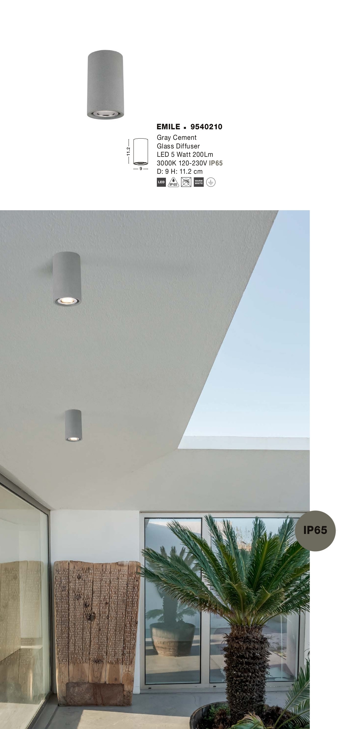 Осветителното тяло 9540210 ще осигури комфорт и естетика във всяко помещение, в което се постави. Цялостната визия и дизайн на лампата и вложените в изработката й материали, като сив цимент, дифузер от прозрачно стъкло, ще допринесат за един неповторим стил. Благодарение на дългогодишния опит, качествените материали и строгия контрол на качеството на изработка на производителя Nova-Luce (Гърция), 9540210 е на високо европейско ниво.
