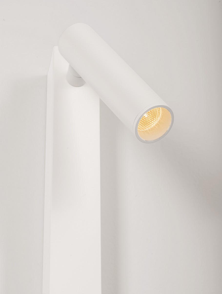 алуминий в матово бял цвят, превключвател ON/OFF, възможност за насочване на светлината