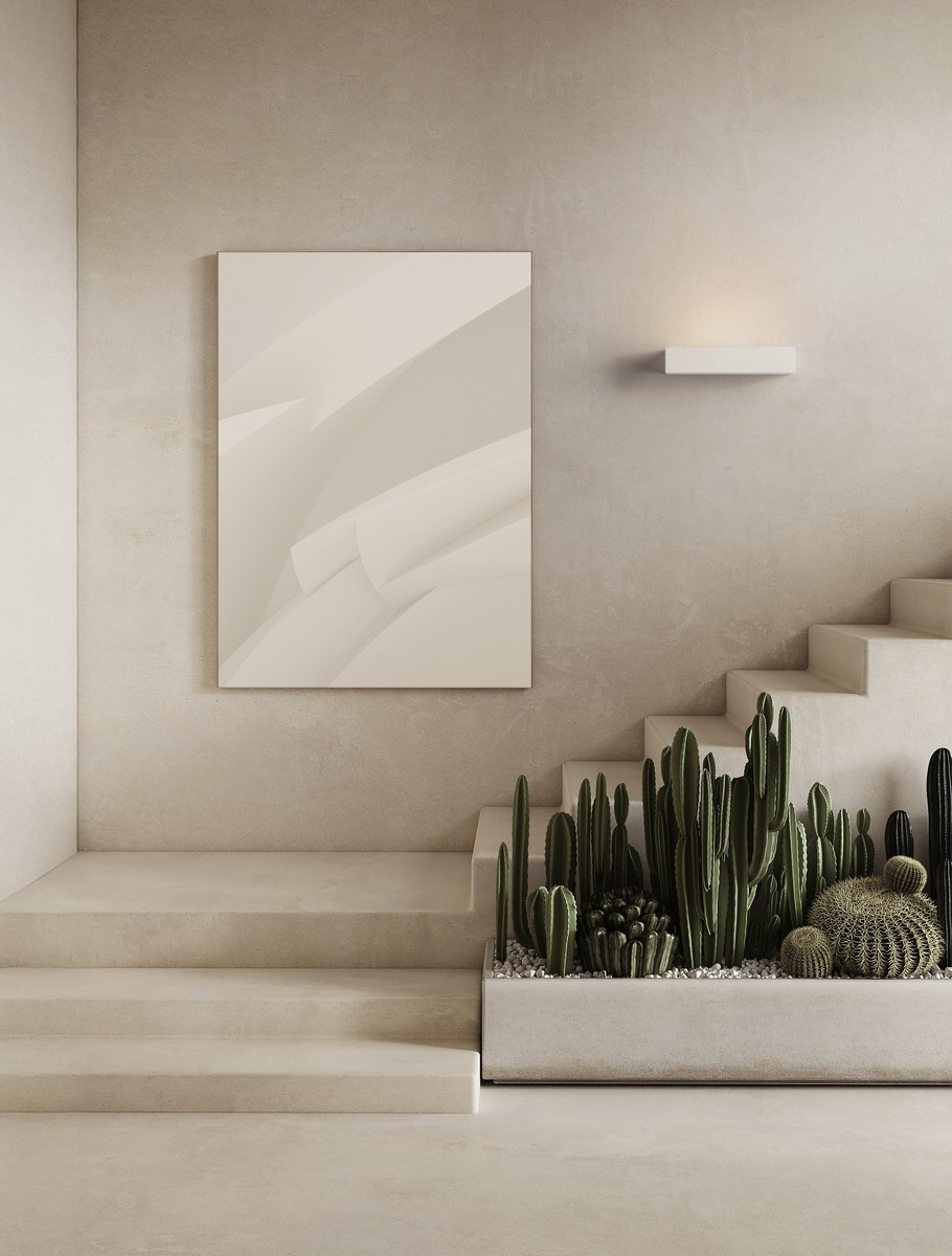 За стила и естетиката на обстановката допринасят, както цялостната визия и дизайн на осветителното тяло, така и вложените в изработката качествени материали, като: бял гипс.