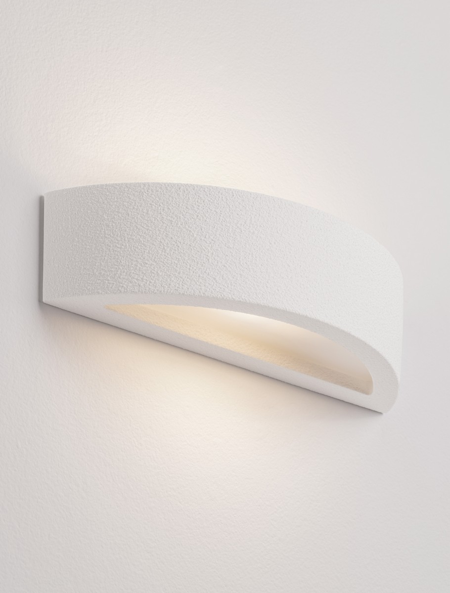 За стила и естетиката на обстановката допринасят, както цялостната визия и дизайн на осветителното тяло, така и вложените в изработката качествени материали, като: бял гипс, светлина нагоре и надолу.
