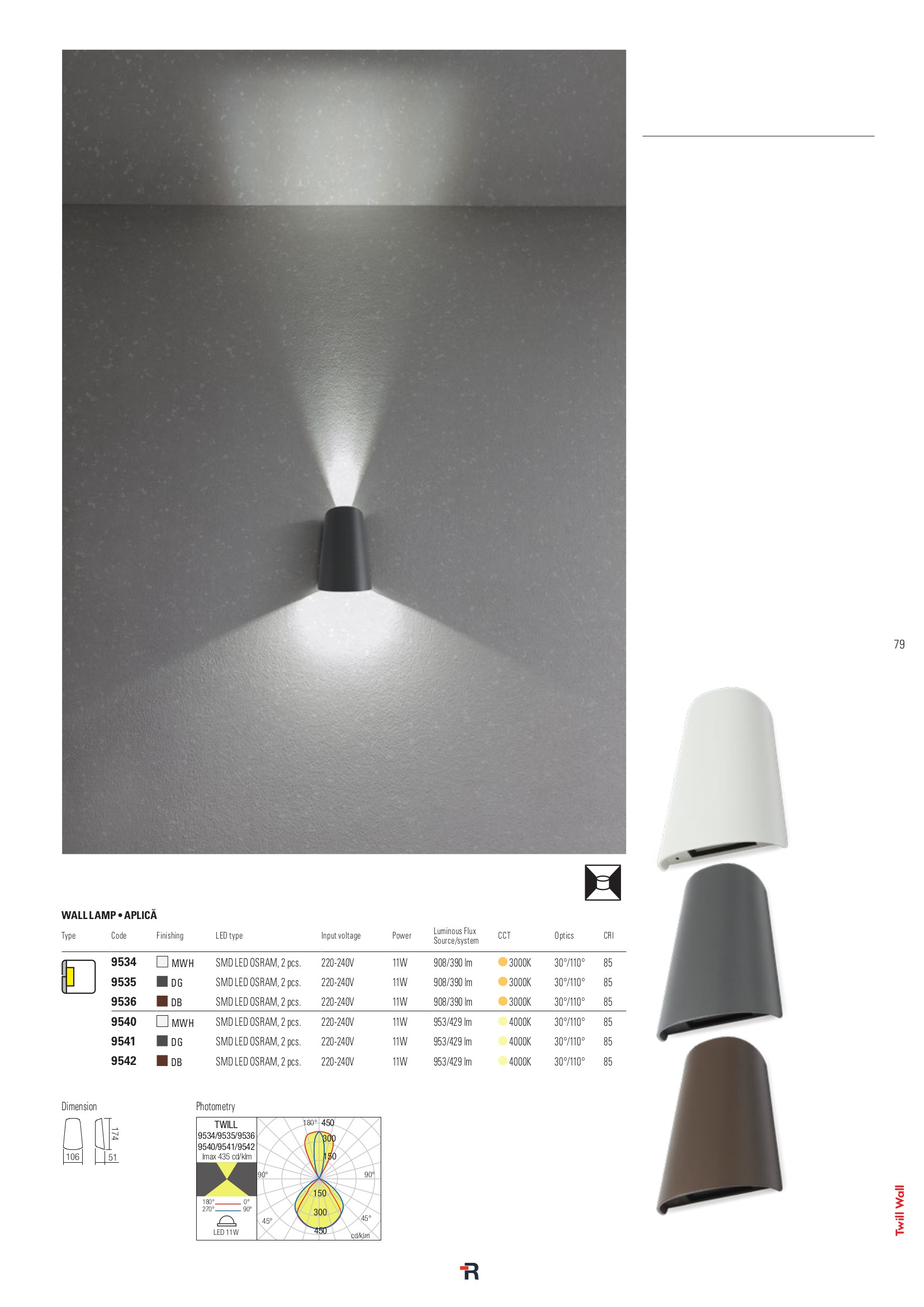 Осветителното тяло 9542 TWILL AP LED 11w IP65 4000K DB(5f) ще осигури комфорт и естетика във всяко помещение, в което се постави. Цялостната визия и дизайн на лампата и вложените в изработката й материали, като алуминий в тъмно кафяв цвят, прозрачно стъкло, ще допринесат за един неповторим стил. Благодарение на дългогодишния опит, качествените материали и строгия контрол на качеството на изработка на дизайнерската линия Redo Outdoor на производителя Redo (Румъния), 9542 TWILL AP LED 11w IP65 4000K DB(5f) е на високо европейско ниво.
