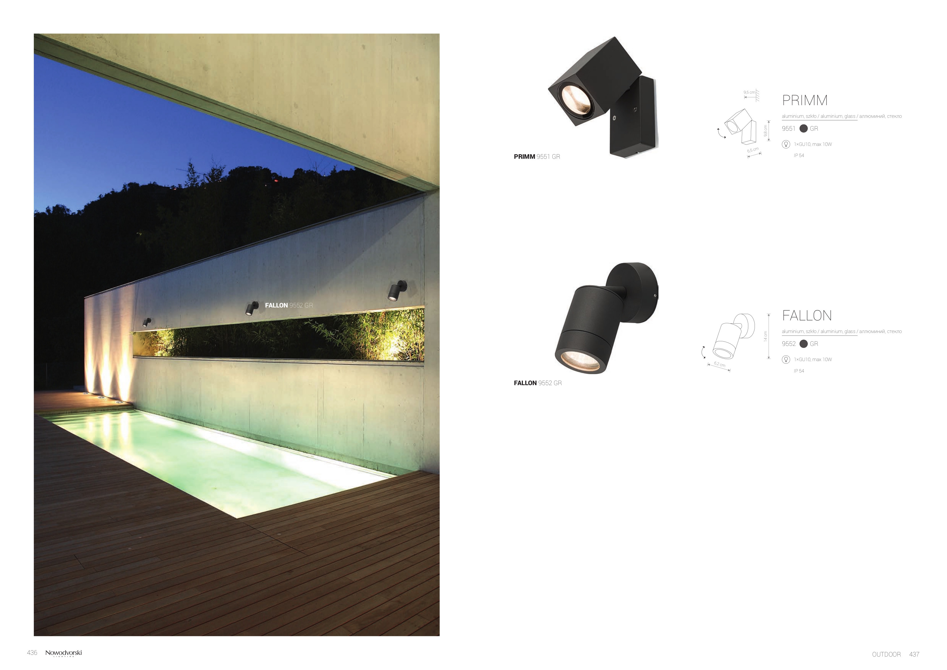Осветителното тяло 9551 PRIMM представлява аплик, спот лампа в съвременен стил. 9551 PRIMM е от категорията осветителни тела и е подходящо за осветяване на различни помещения и пространства като: външно осветление, фасадно осветление.