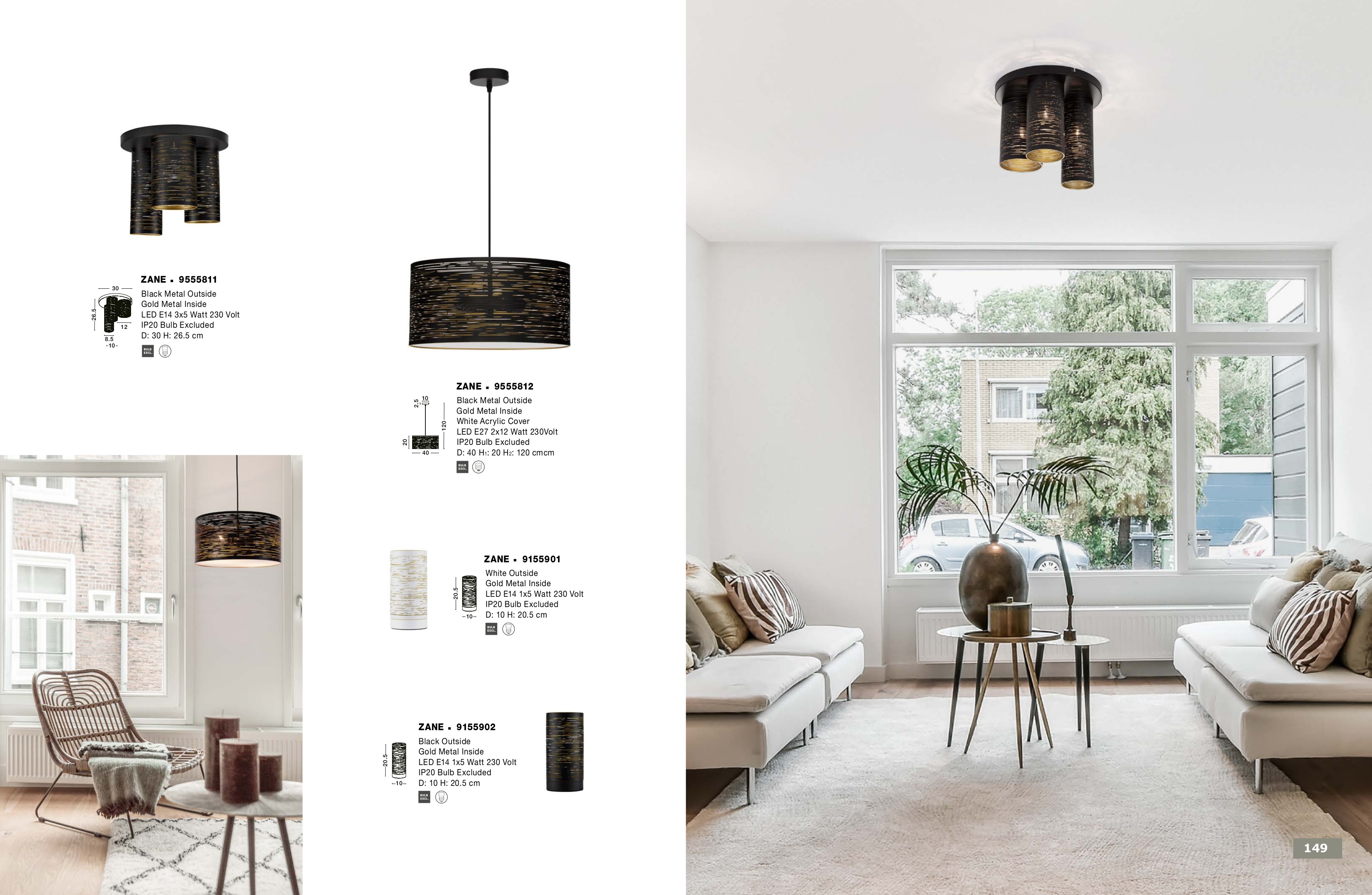 Стилът и естетиката на обстановката ще се обогатят благодарение, както на цялостната визия и дизайн на осветителното тяло, така и на вложените в изработката му, качествени материали, като: метал - черен отвън и в цвят злато отвътре.