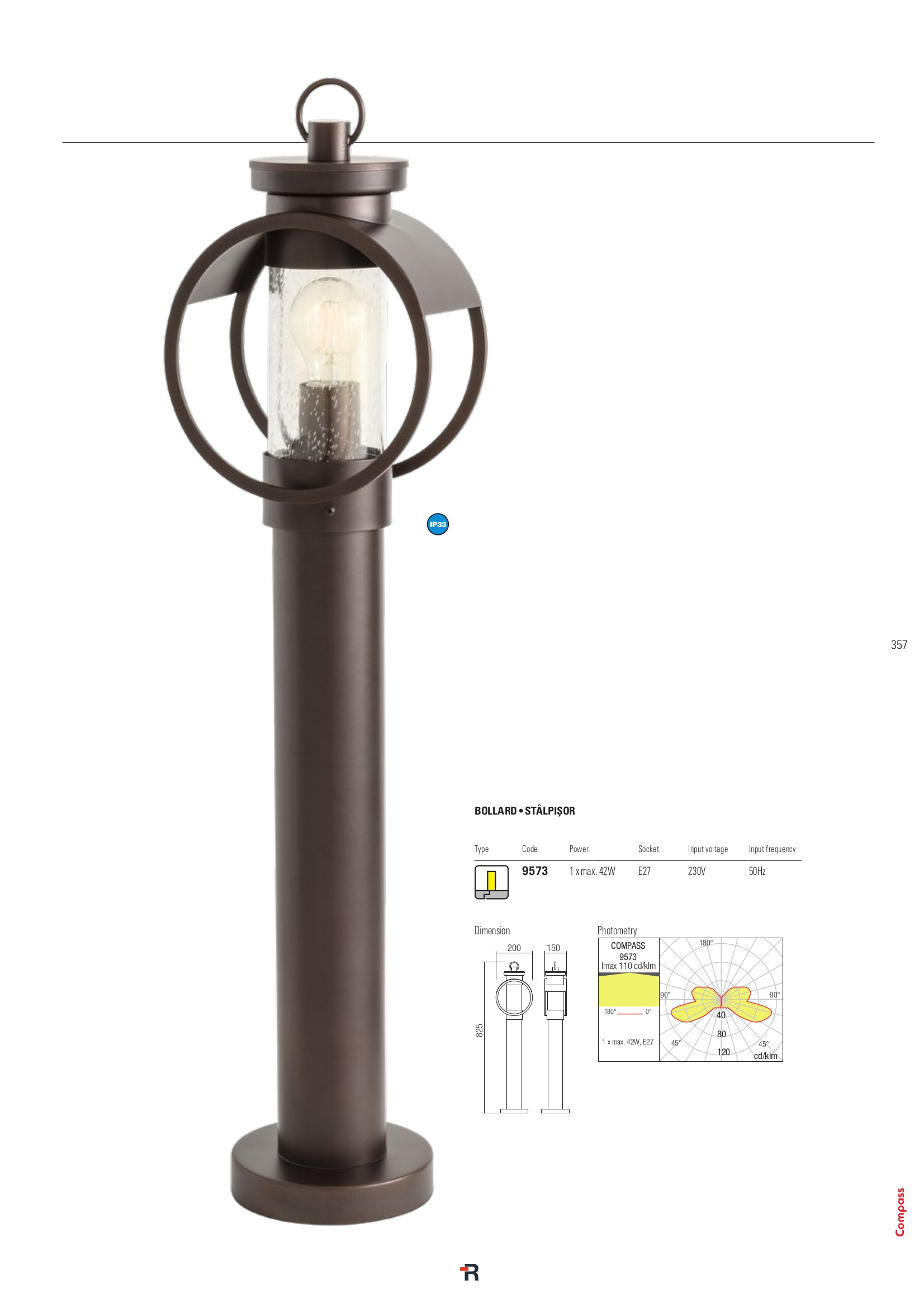 Осветителното тяло 9573 представлява лампион / правостояща лампа, външна лампа в съвременен стил. 9573 е от категорията осветителни тела и е подходящо за осветяване на различни помещения и пространства като: градинско осветление, външно осветление.