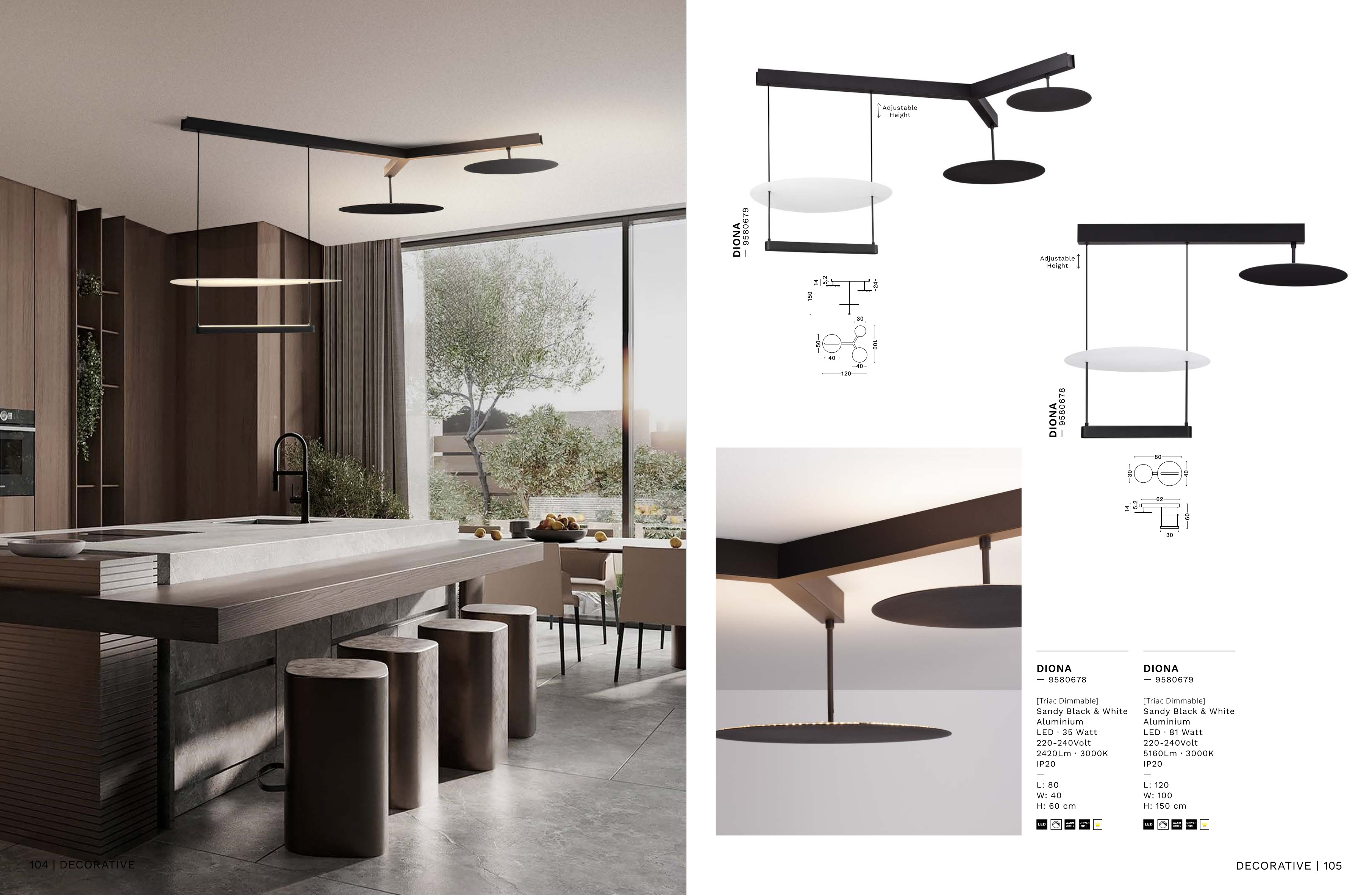 Осветителното тяло 9580678 ще осигури комфорт и естетика във всяко помещение, в което се постави. Цялостната визия и дизайн на лампата и вложените в изработката й материали, като алуминий и стомана в пясъчно бяло и черно, силикон, непряка светлина, димиране с триак, ще допринесат за един неповторим стил. Благодарение на дългогодишния опит, качествените материали и строгия контрол на качеството на изработка на производителя Nova-Luce (Гърция), 9580678 е на високо европейско ниво.