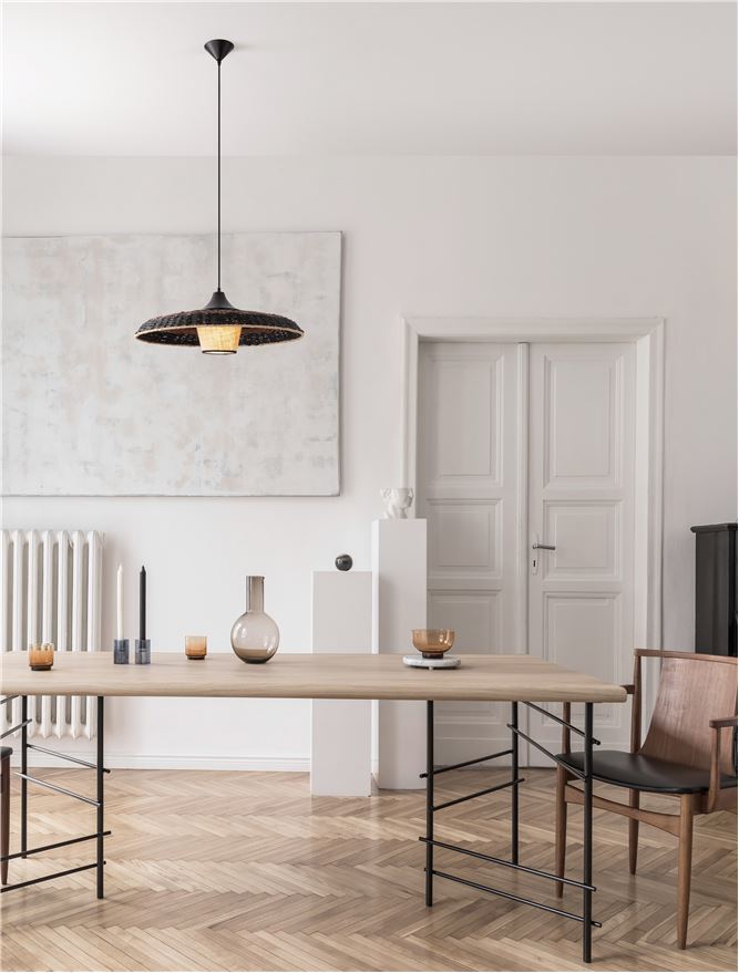 За стила и естетиката на интериора допринасят, както цялостната визия и дизайн на осветителното тяло, така и вложените от производителя в изработката висококачествени материали, като оцветен ратан (натурален, черен и кафяв цвят), PVC кабел с черна текстилна оплетка, черен метал.