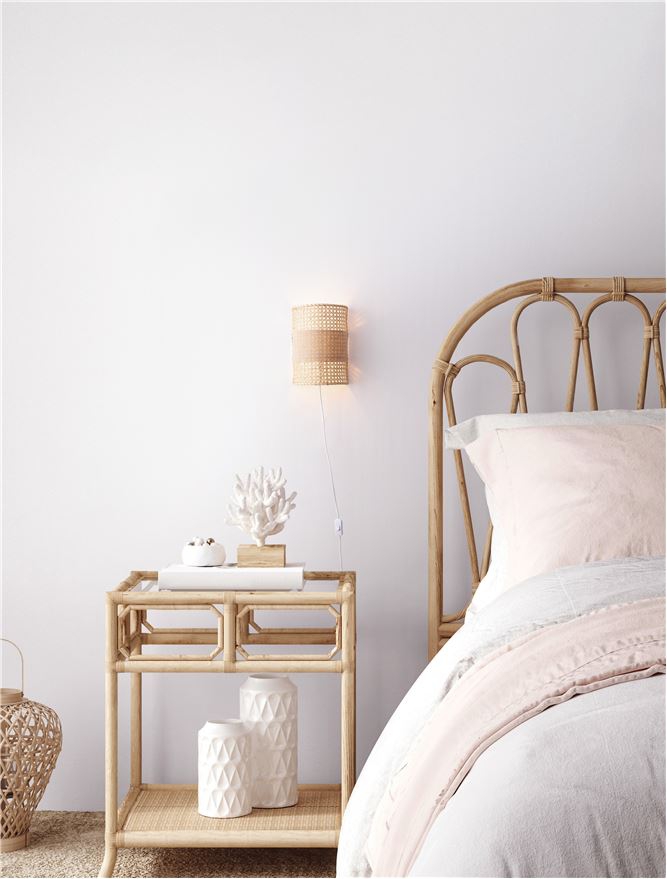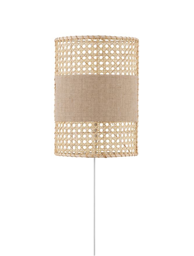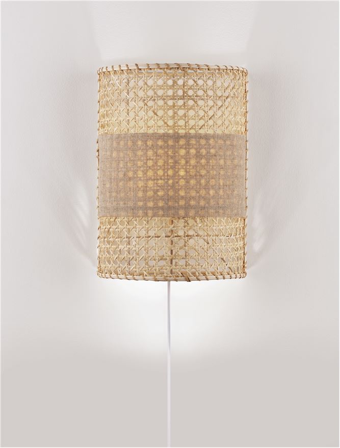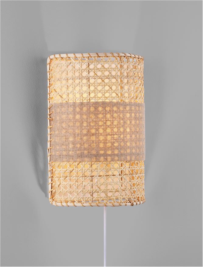 ратан в естествен цвят, основа в цвят крем, кабел в бяло 1.5m с щепсел и ключ ON/OFF