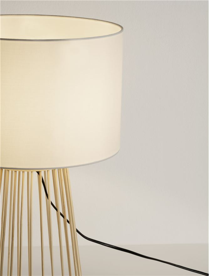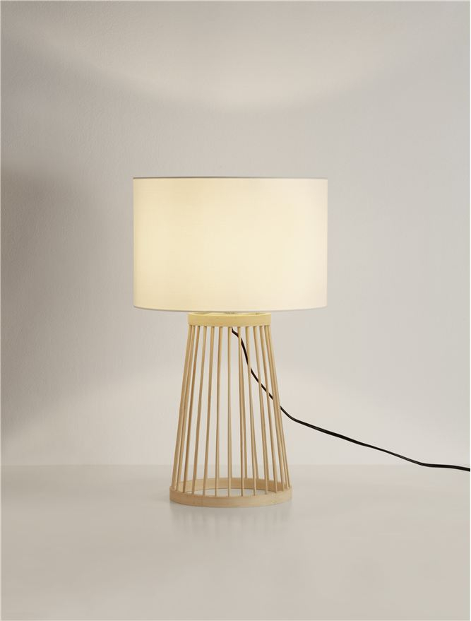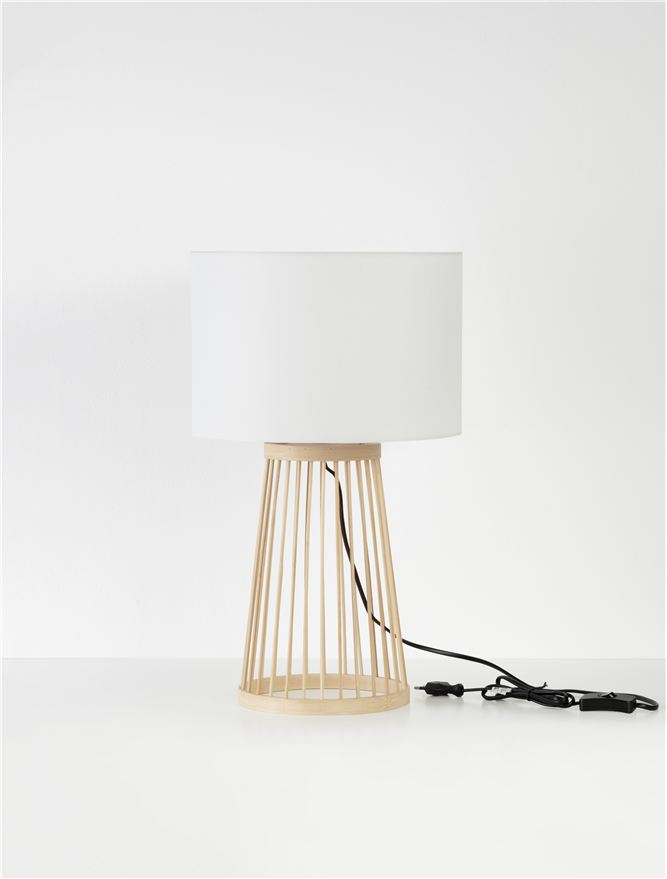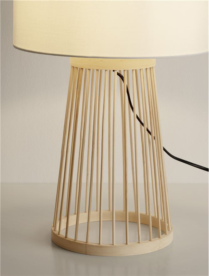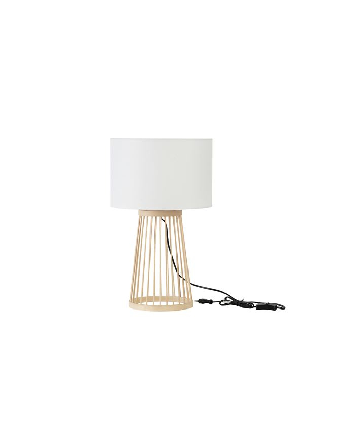 натурален бамбук, абажур от памук в бяло, захранващ кабел с щепсел и превключвател ON/OFF с дължина 1.6m
